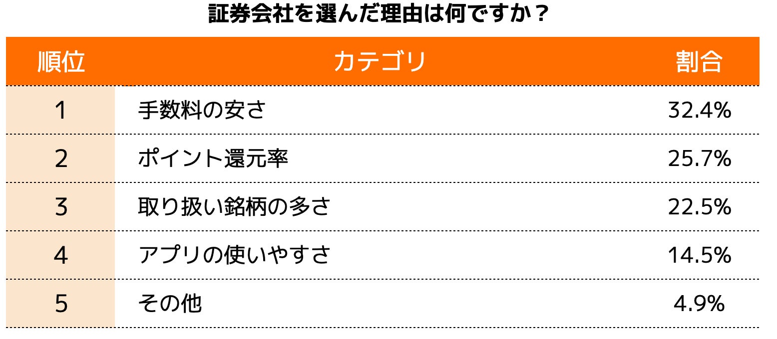 30代が新NISAで利用する証券会社を比較して選ぶ理由の第1位は「手数料の安さ」です。