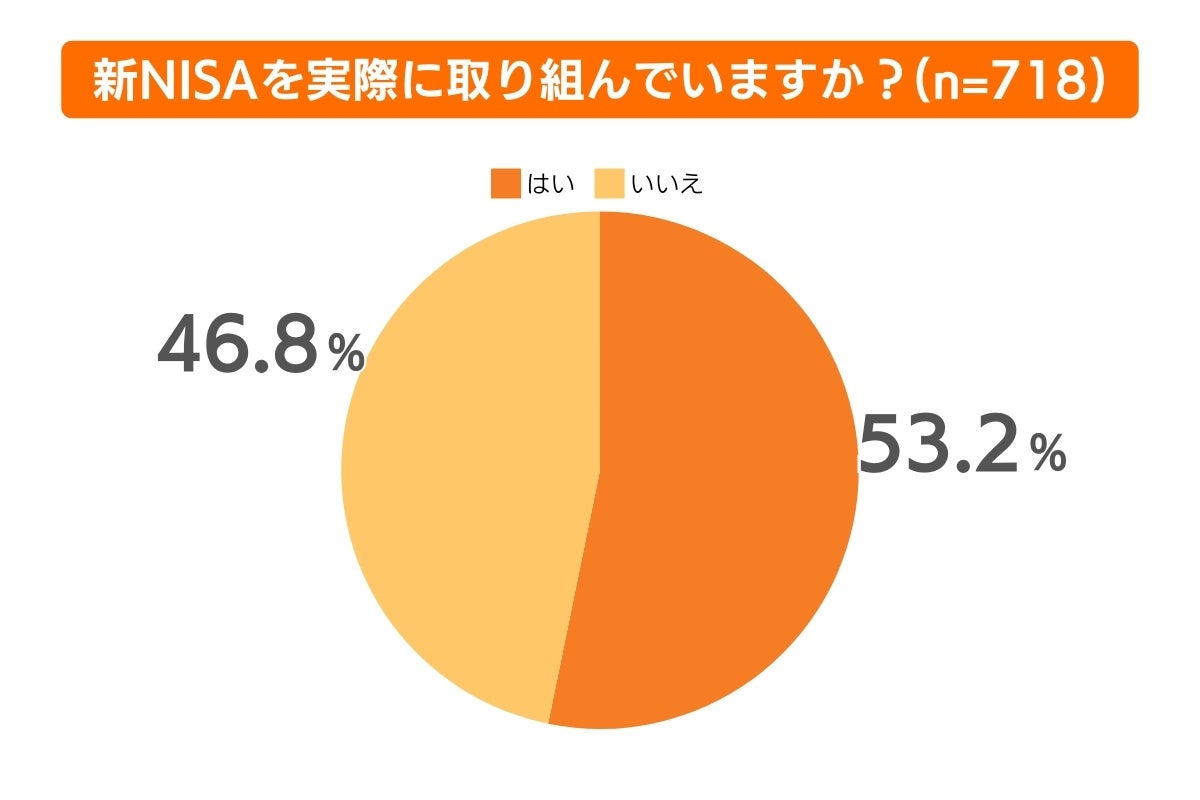 アンケートに回答いただいた中で53%の方が新NISAを実際に取り組んでいるという結果になりました。