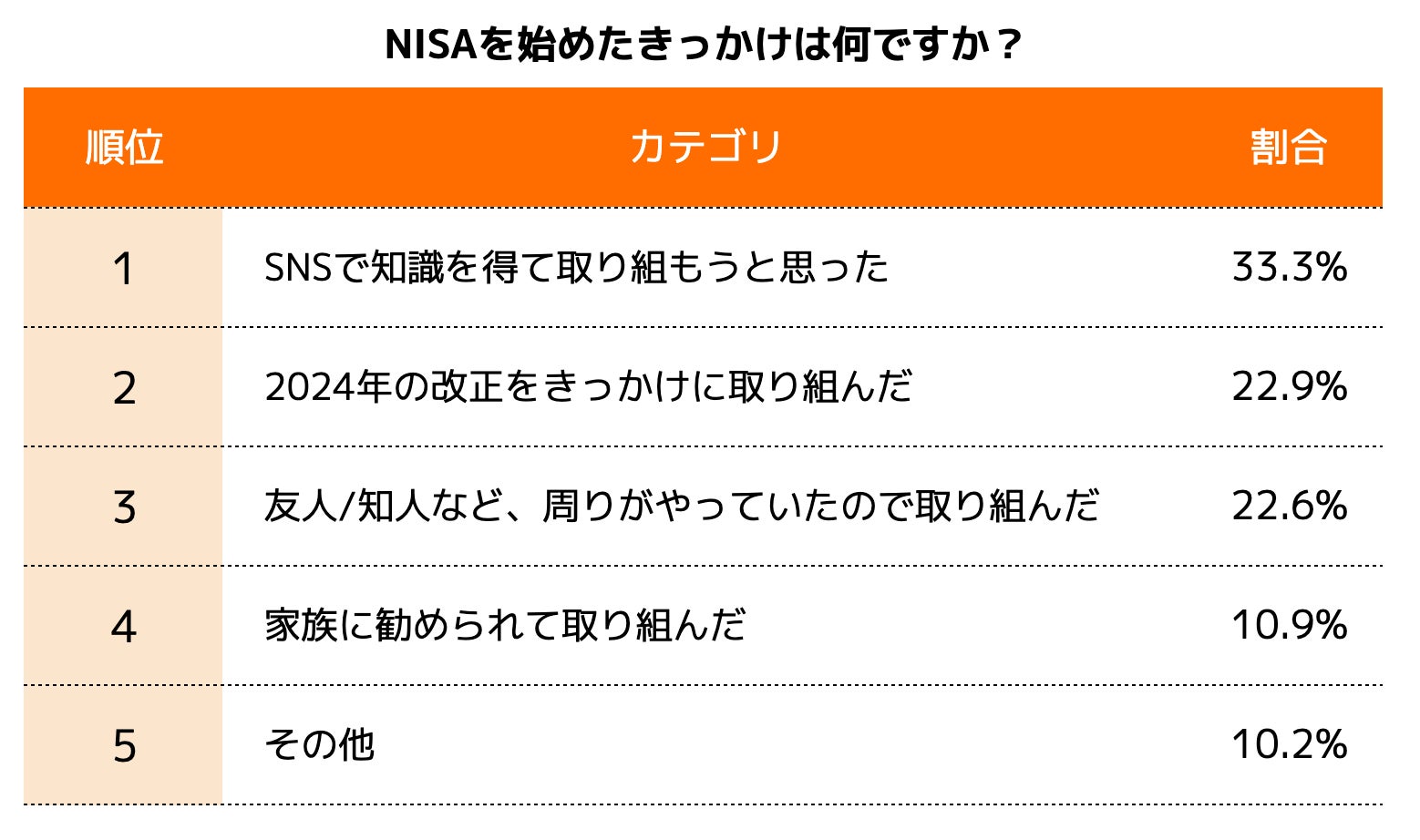2024年の新NISA改正でSNSやニュースなどでNISAが話題になり、それをきっかけに始めたという方が多いのではないでしょうか。