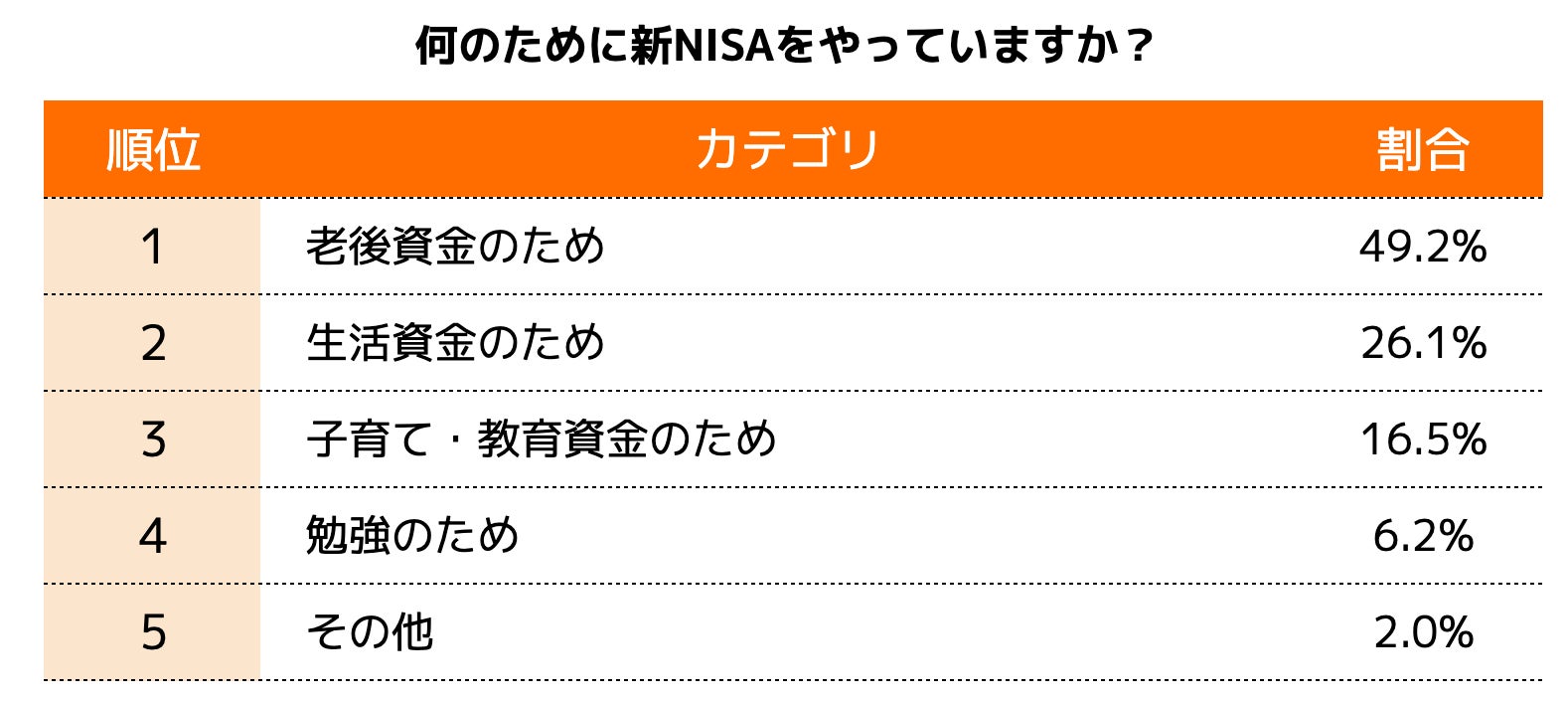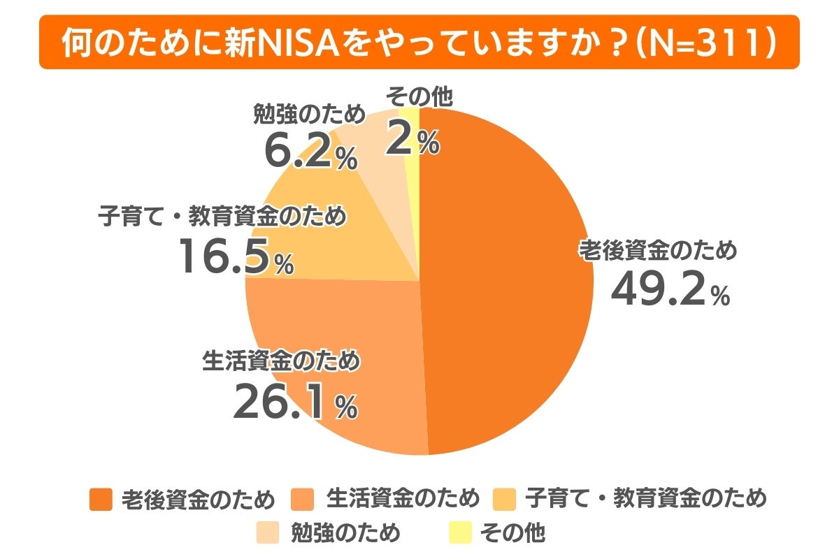 新NISAをやっている理由で1番多い回答は「老後資金のため」で49.2%でした。