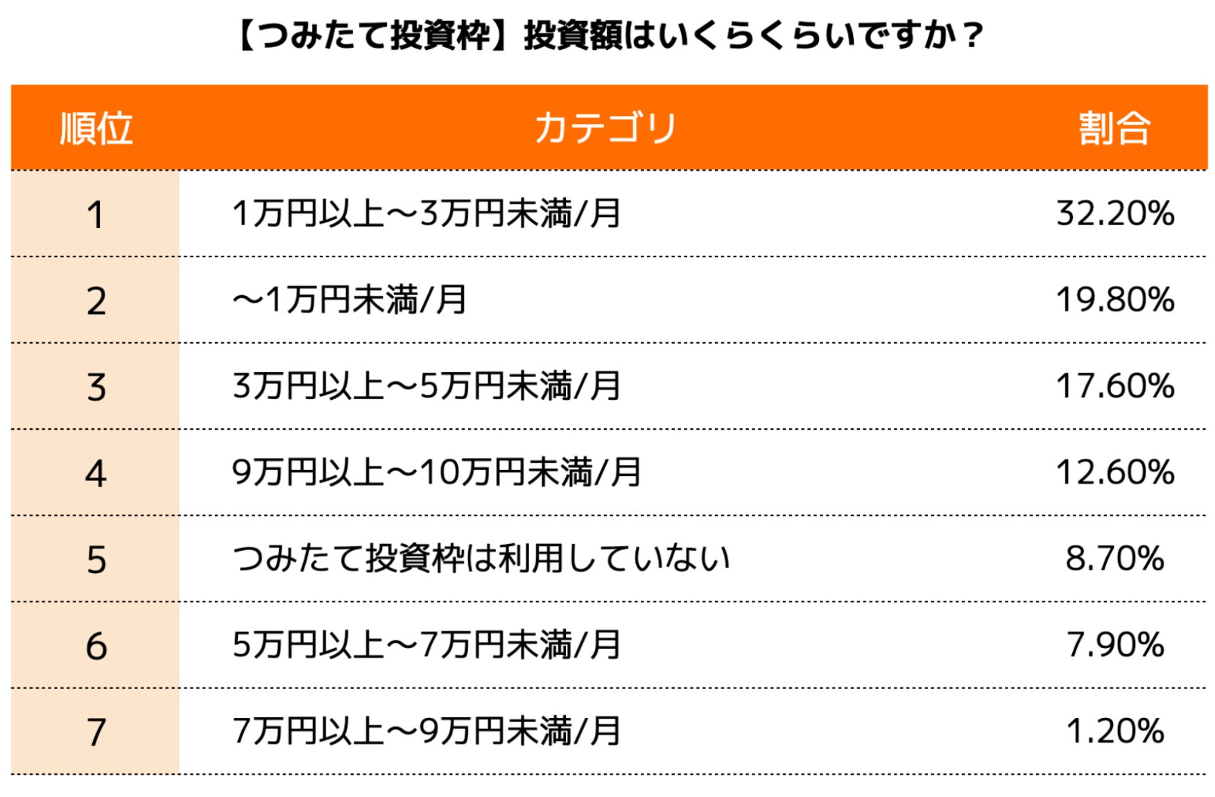 30代にはつみたて投資が人気で、月3万円以下の少額で取り組んでいる方が多いという結果になりました。