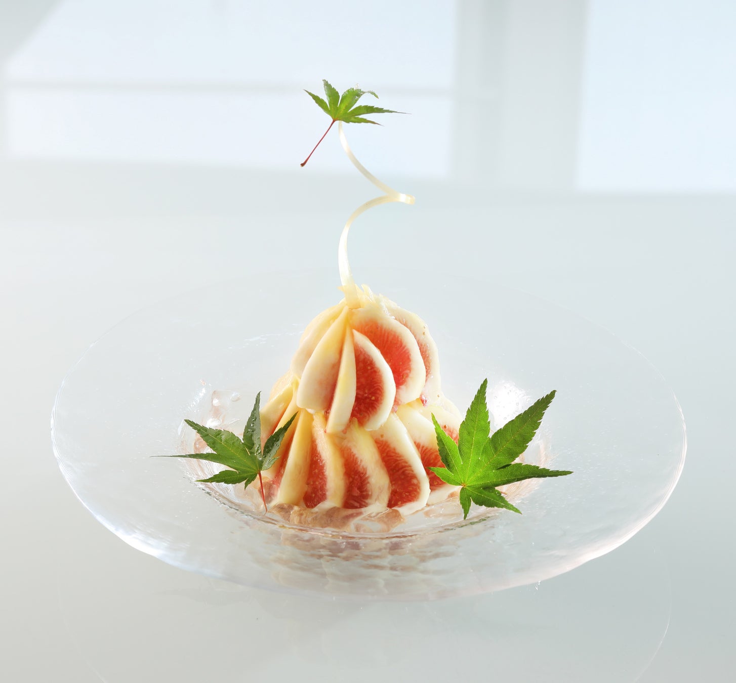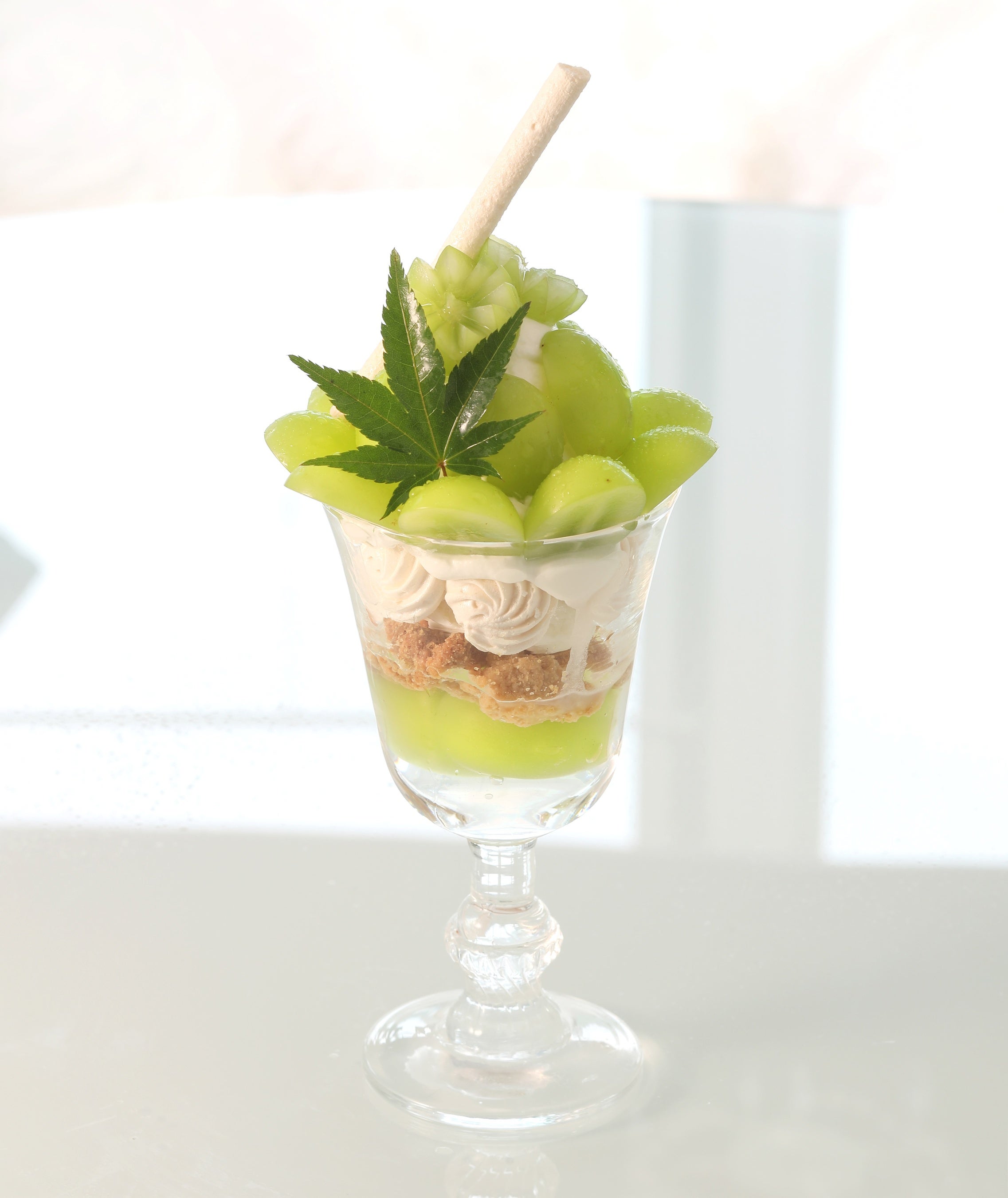夜にはオトナのための“夜パフェ”がお楽しみいただけます。「いちじくパフェ」は白杉酒造の日本酒「キメラ」を添えました。お好みでパフェに掛けてお召し上がりいただけます。(白杉酒造は酒米(さかまい)ではなく、食用米(飯米)のみで酒造りを行っている日本唯一の酒蔵。コシヒカリに白、黄、黒の3種の麹と3種の酵母を使った複雑かつ絶妙な調和のお酒です。)