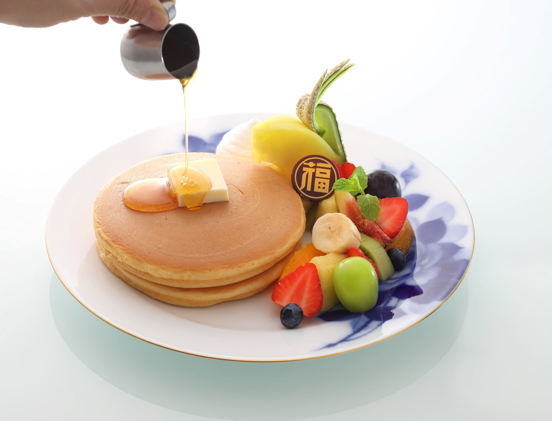 昭和初期から愛された昔ながらの丸福珈琲店名物ホットケーキ。オーダーをいただいてから専用銅板で一枚ずつ丁寧に焼き上げております。今風の柔らかいパンケーキとは異なり、表面はサクッと中はふんわり食べ応えのある懐かしい味わい。『 丸福珈琲店ザ・パーラー 大丸京都店 』では、京丹後 白杉酒造の酒種を使用し、京都らしいアップデートを加えております。