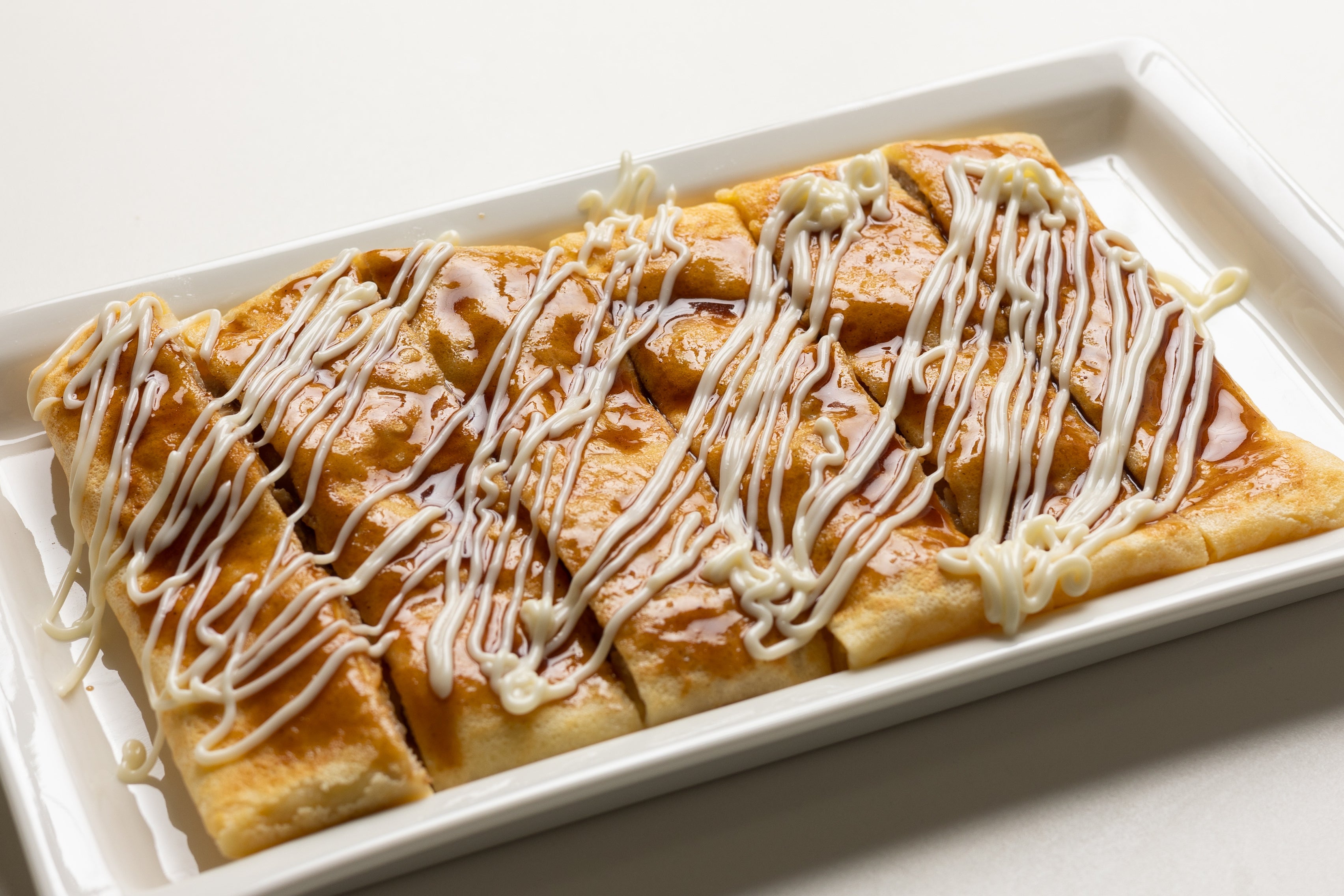 通常、食事系クレープで使用している生地にカリっと焼き上げた豚肉を