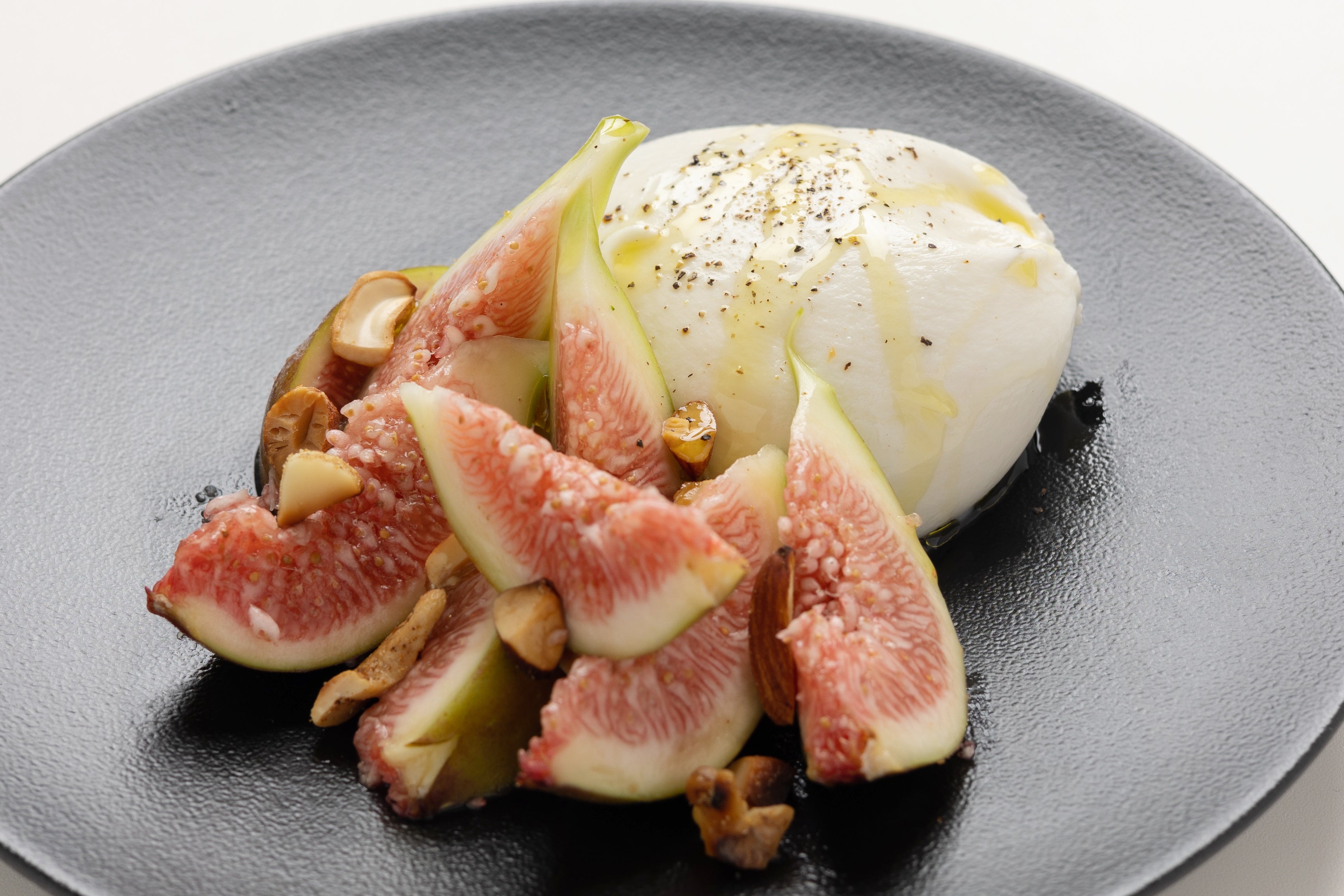 濃厚でクリーミーなイタリア産ブラータチーズに相性の良い、その時期旬のフルーツと合わせた一皿。