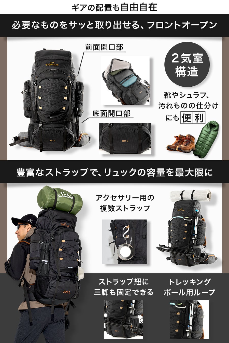Amazon.inでトップシェアを誇る登山ギアブランドTripoleを運営している(Tripole Japan 新潟県三条市、代表:渡邉)は、長時間・重装備での旅における「疲労」や「身体への負担」といった根本的な課題に向き合い、それを解決するための新型ザック「Tripole ザック 60L」の新発売しました。