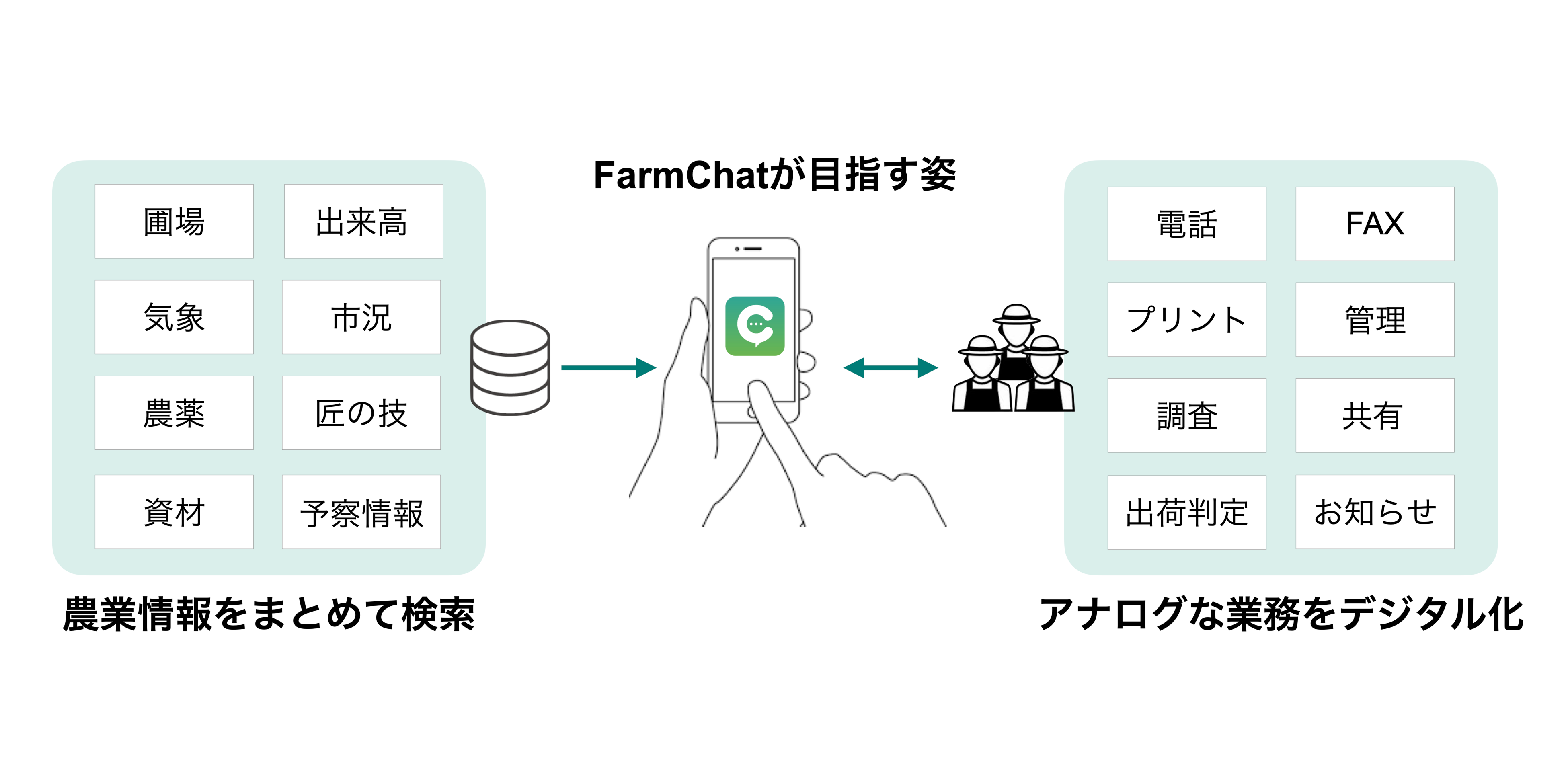 「FarmChat」は、農業者はもとより農業に関わる全ての人々向けのビジネスチャットツールです。これまで紙や電話でやりとりすることがほとんどであった農業分野の業務運用を効率化し、様々なデータ連携機能を利用して営農業務をサポートします。 ※ホームページURL:https://farm-chat.com/