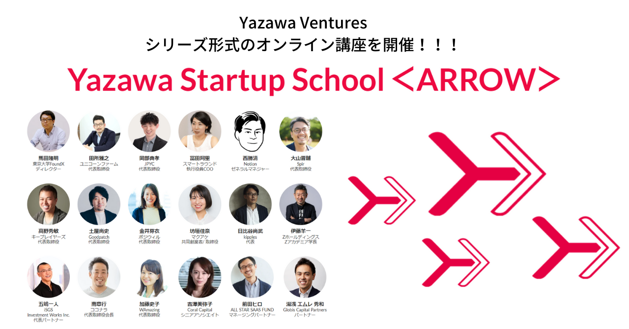 Yazawa Ventures、創業期の起業家向けに、シリーズ形式のオンライン講座『Yazawa Startup School <ARROW>』を開催