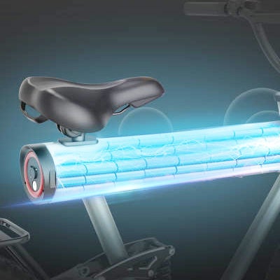 本体フレームに収納されたリチウムイオンバッテリーは、15~20Ahの大容量。1回の充電で80~100km走行可能なため、週に1回の充電で毎日10km走れます。