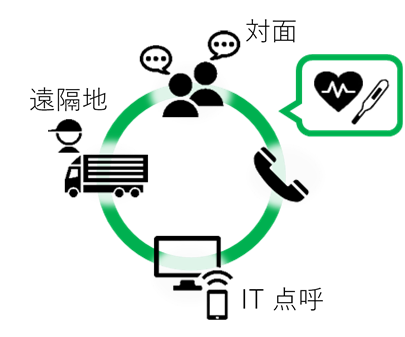 遠隔点呼とは、自動車運送事業者(バス、ハイヤー、タクシー、トラック)が、要件を満たす機器・システムを用いて遠隔拠点間で行う新たな点呼制度です。(詳細は国土交通省のリーフレットhttps://www.mlit.go.jp/jidosha/content/001471377.pdfをご覧ください)