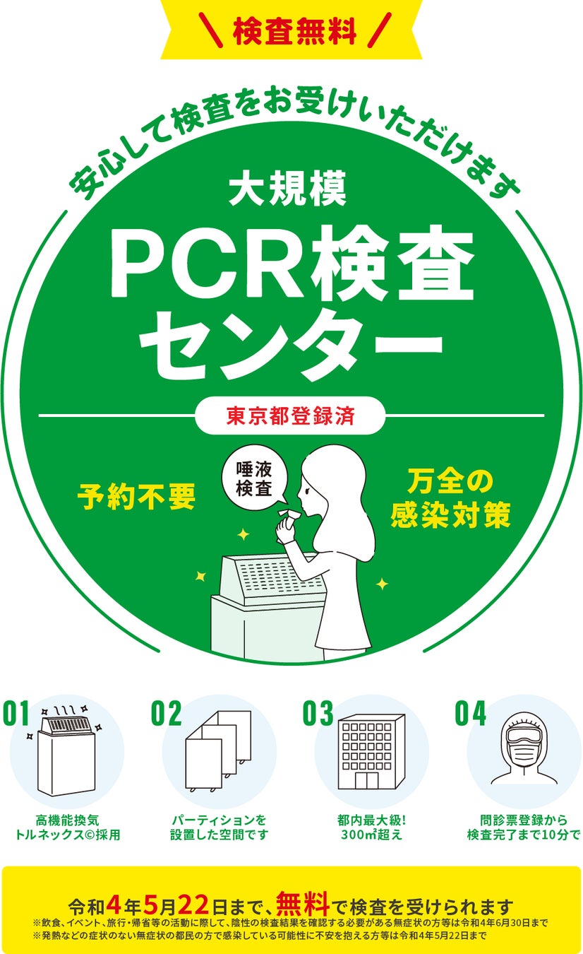 ゴールデンウィーク中に陰性証明書が求められる方、帰省前に検査を受ける必要のある方、高齢者や免疫に不安のある方に接触予定の方、ご自身が高齢者や免疫に不安のある方等は、都民の方以外でも検査を無料で受けることができますので、お気軽にスタッフまでお問い合わせください。