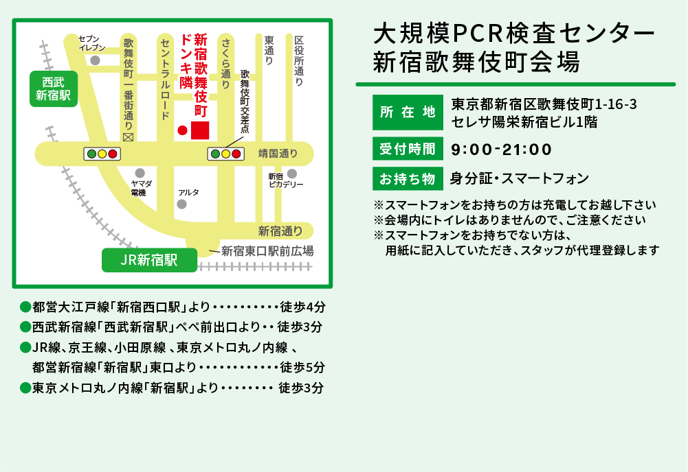 新宿歌舞伎町会場:東京都新宿区歌舞伎町1丁目16−3 セレサ陽栄新宿ビル1階 受付時間:9時ー21時