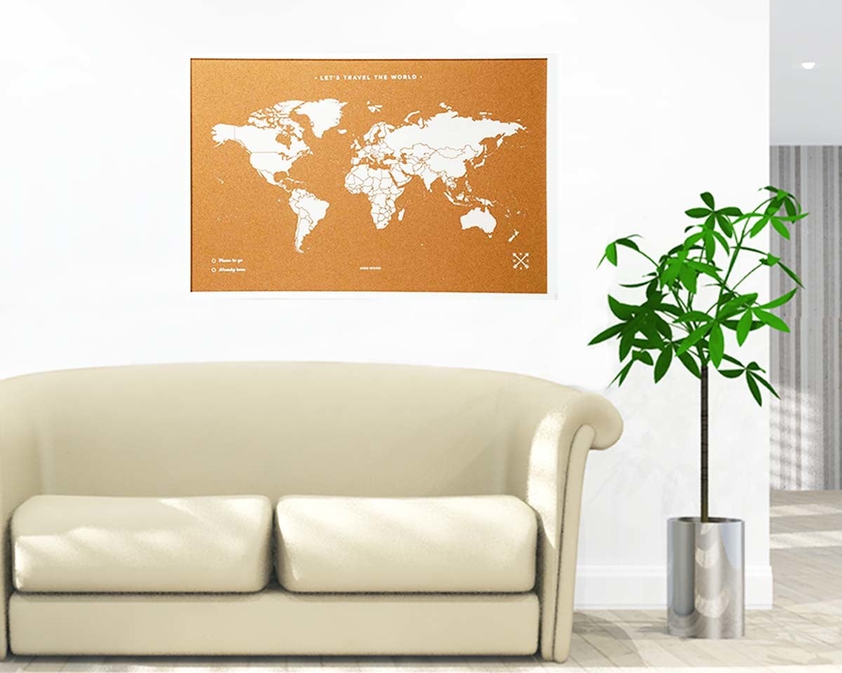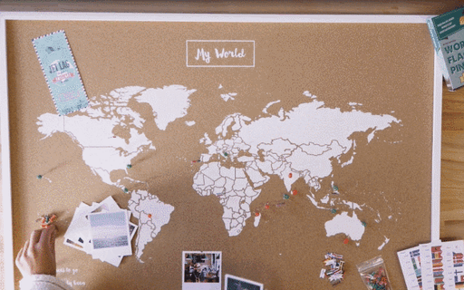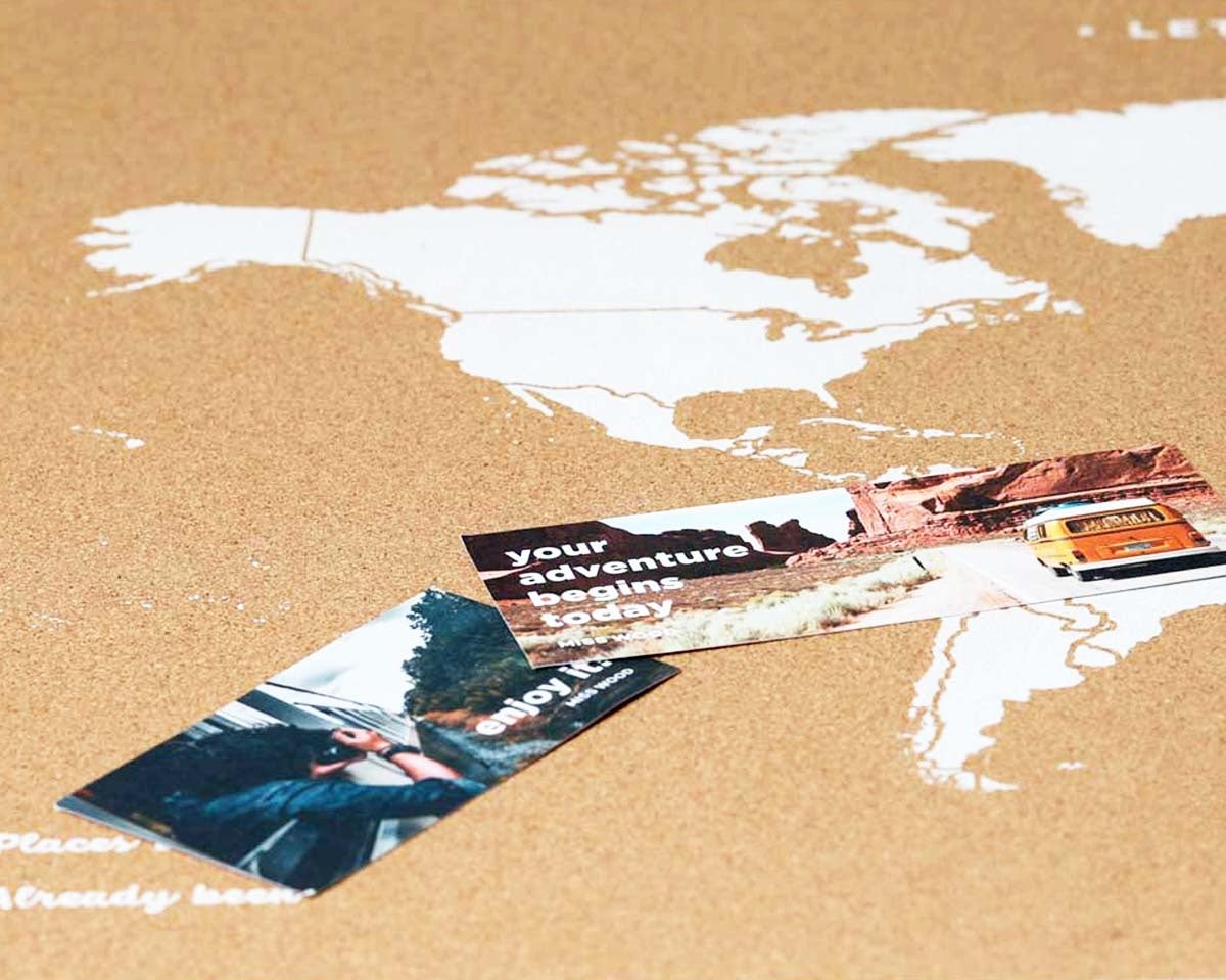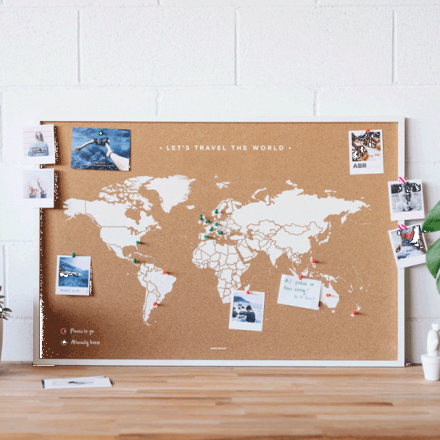 旅の思い出に写真はたくさん撮るけど、後で見返すことってあまりないもの。【コルクマップ】は一般のコルクボードと同様にピン留めが可能です。旅先で撮った写真や航空チケット、絵はがきなどをピン留めすれば、もうオリジナルの思い出マップの出来上がり。旅の記憶が素敵なインテリアとして毎日眺めて楽しめます。