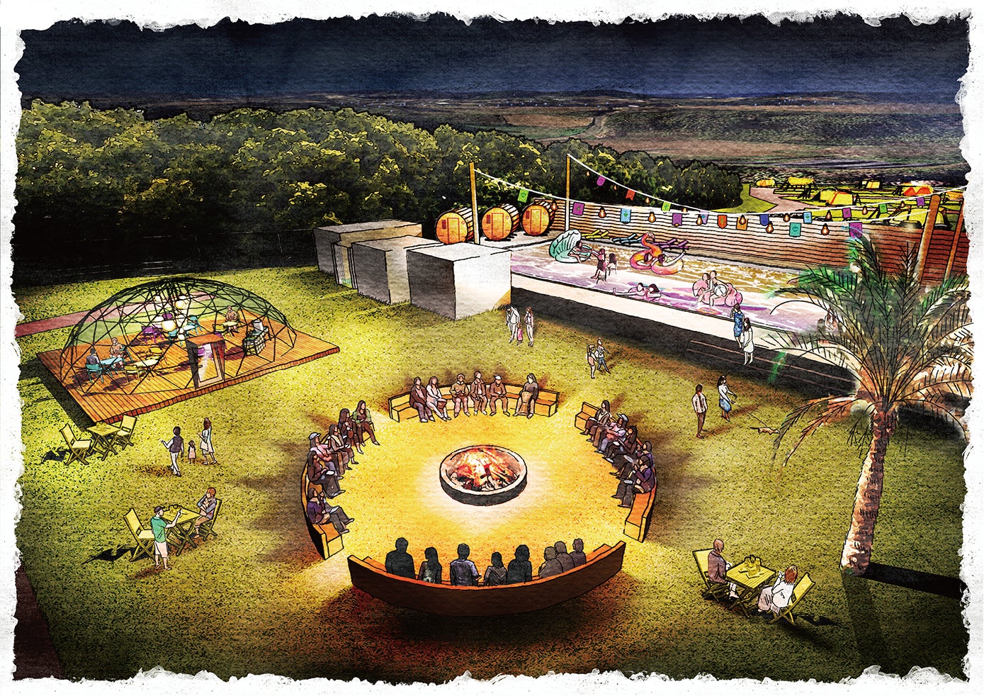 多古(たこ)町の響きから「タコス→そう、メキシカンだ!」ということで、「TACO GLAMP THE MEXICO」というコンセプトが決まり、「まるでメキシコにいるような非日常リゾート体験」を多古町で実現します。学生、友達同士、カップル、ファミリー、そしてペット連れでも楽しめるリゾート施設です。