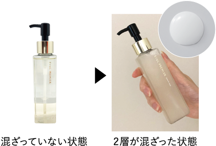 オイル層(油層)とセラム層(水層)の2層式にすることで、オイル単体の美容液に比べ保湿効果がUPし、肌への摩擦を軽減し、すべりをなめらかにします。