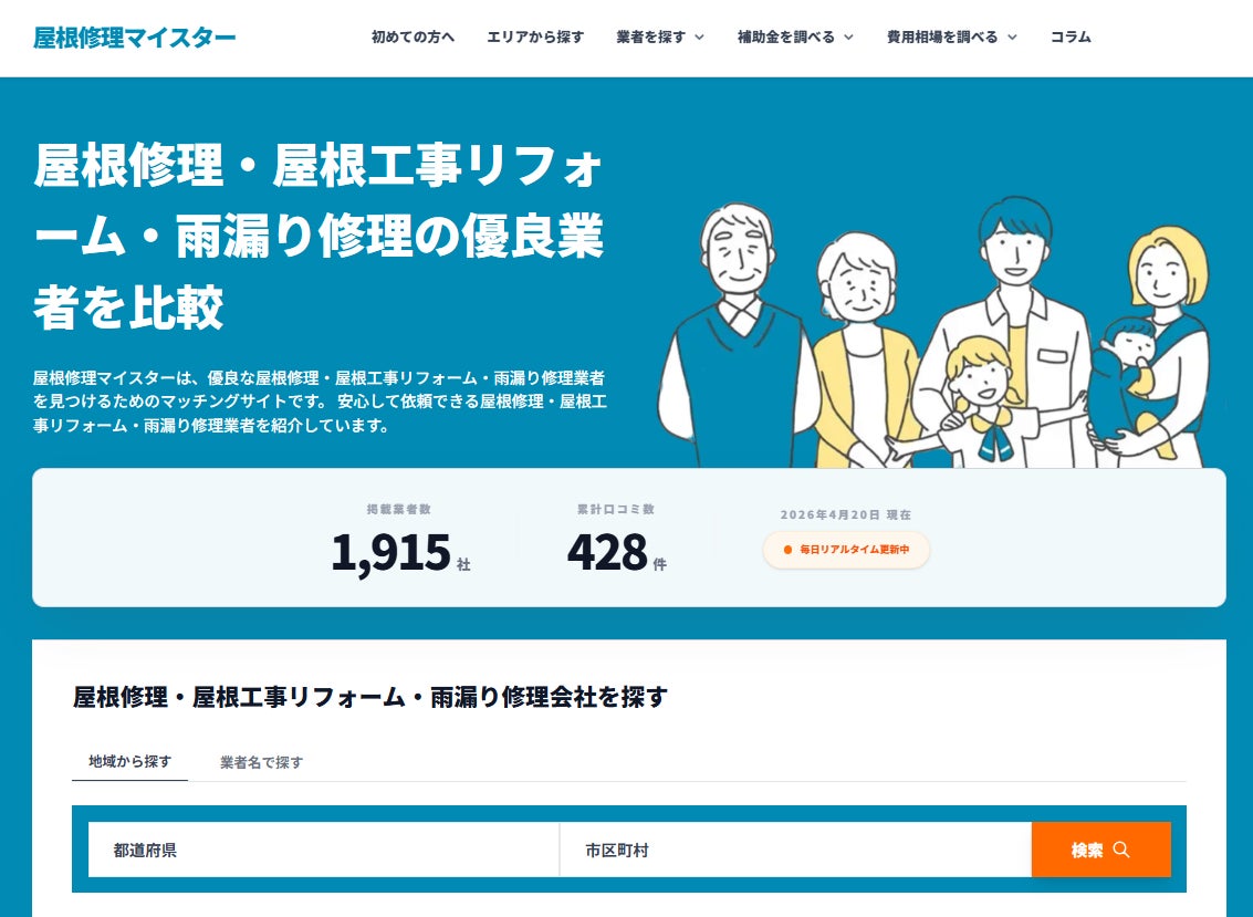 おすすめの屋根修理業者を探せる比較サイト『屋根修理マイスター』を全面リニューアル!口コミや評判をより見やすく!