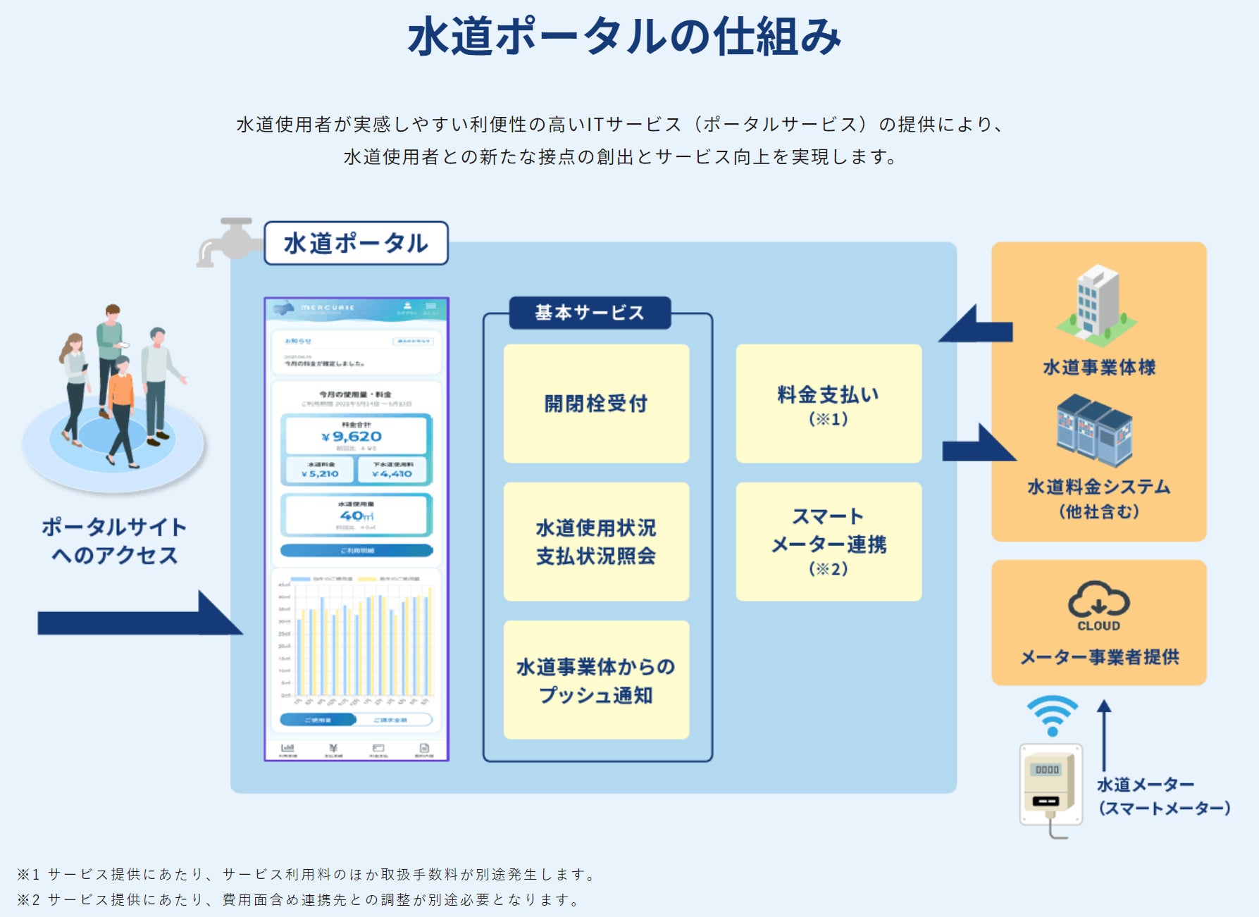 これらの業務をデジタル化し、水道使用者に向けたサービスの向上、そして職員の業務効率化を目指し、水道使用者向けの窓口業務を一元管理できるシステム「水道ポータル」のサービス提供を開始しました。