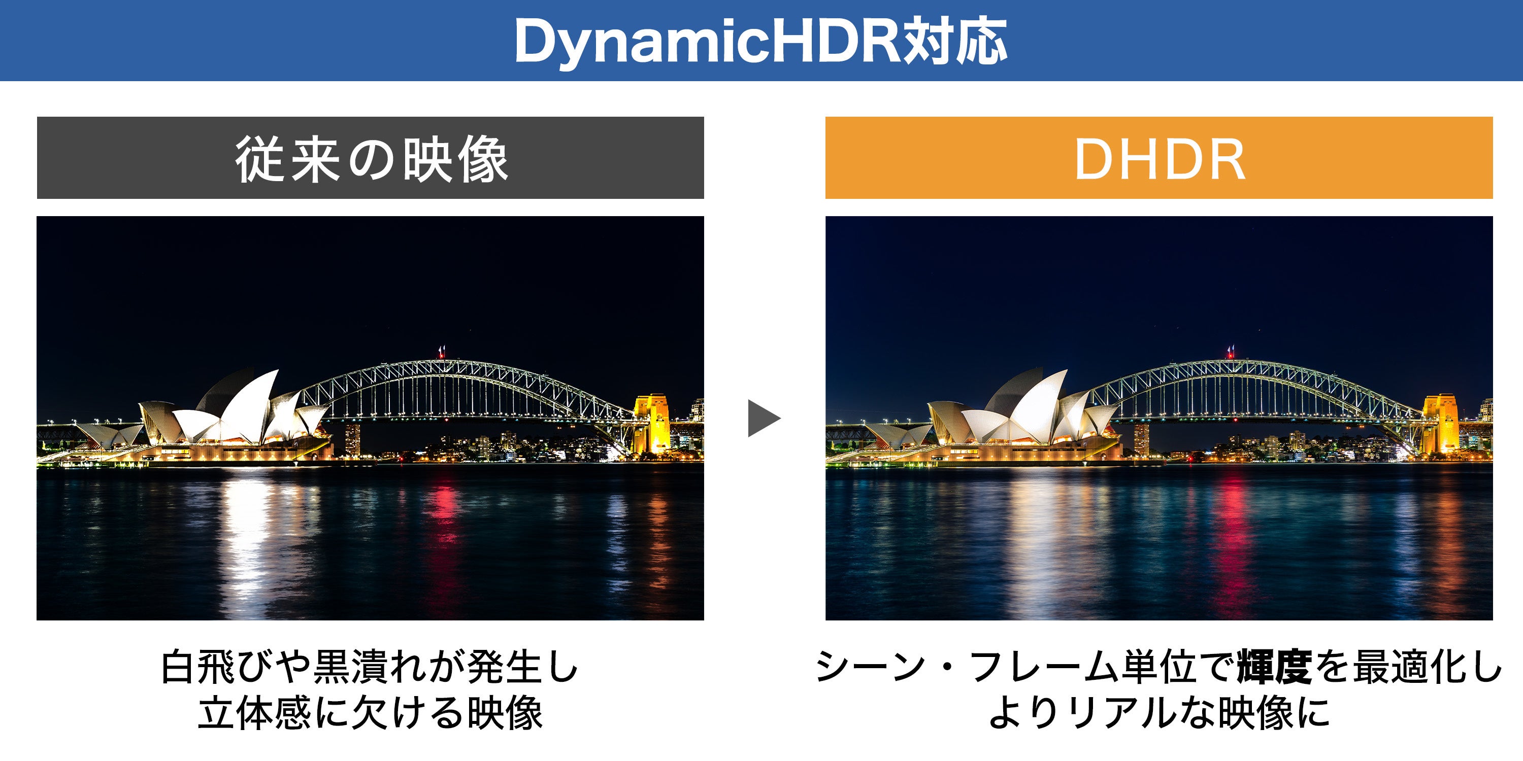 フレーム単位で明暗の差やコントラストを最適化し、よりリアルな映像を楽しめるDynamicHDRに対応しています。