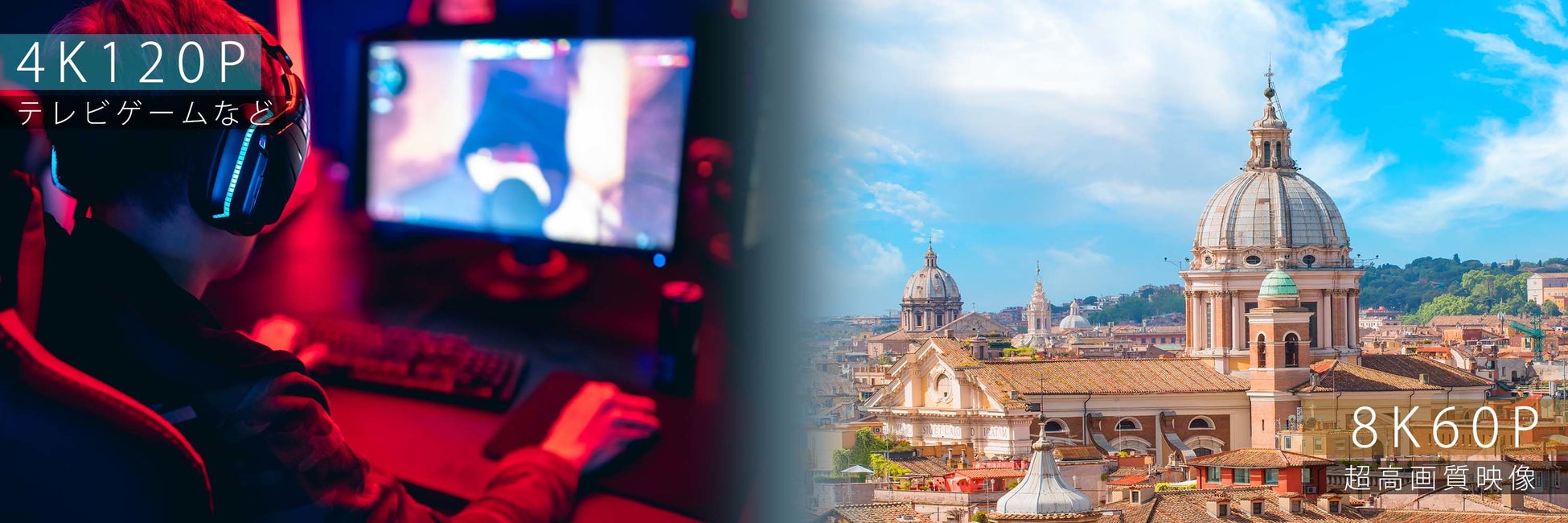 48Gbpsの高速伝送で8K/60p、4K/120pなどの超高画質映像を対応機器でお楽しみいただけます。