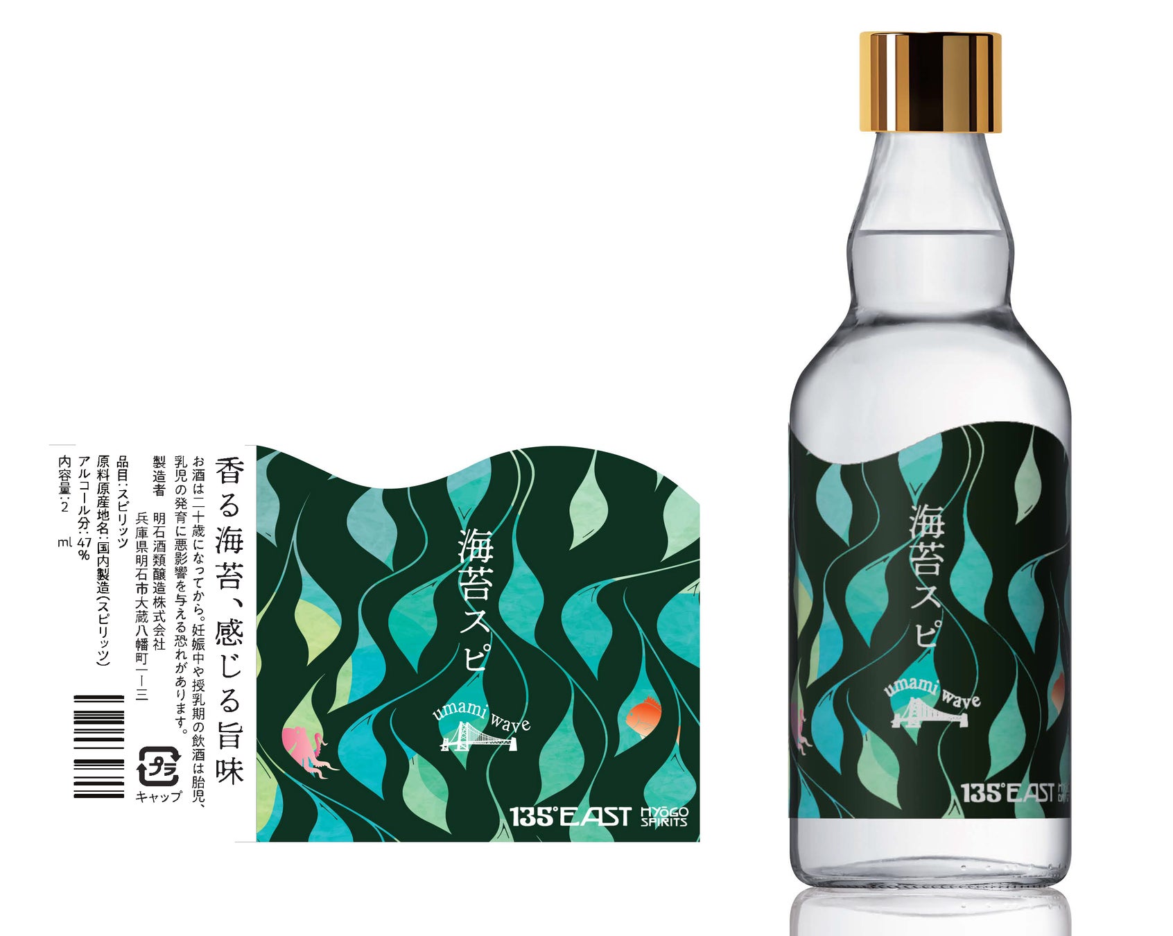 海の恵みを生かした新商品、東経135度兵庫ドライジンシリーズ第2弾食べる海苔が生まれ変わる!アルコール度数47度の特別なスピリッツ「海苔スピ(Umami Wave)」誕生!