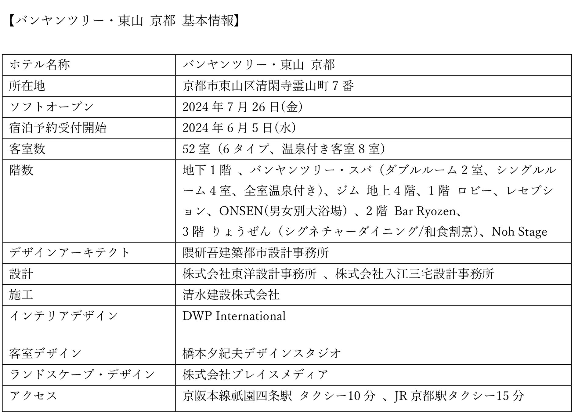 <ご参考>「バンヤンツリー・東山 京都」ホテル公式リリースはこちら