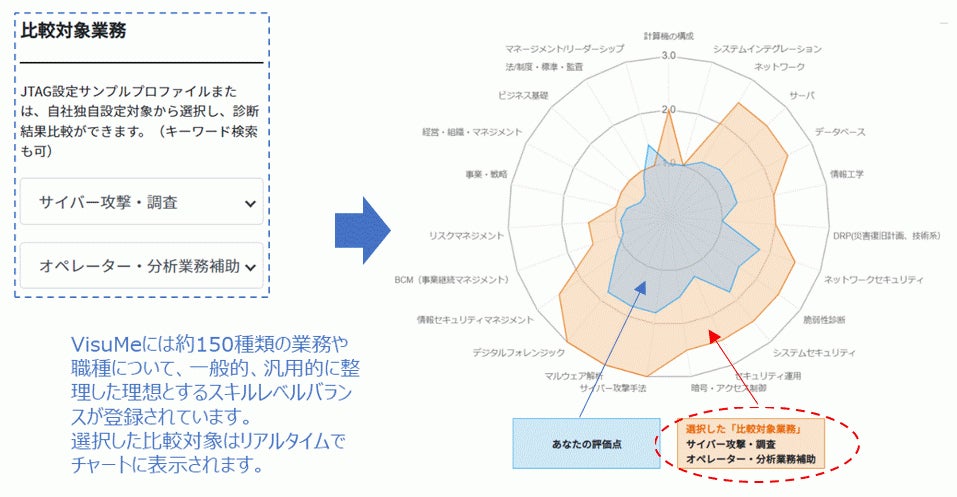 ことです。VisuMeには150種類の業務や職種に対してのスキルレベルバランスの情報が組み込まれます。これ
