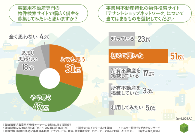 最後に、事業用不動産に特化した物件検索サイト「テナントショップ ネットワーク」についてご存知かどうか聞いてみました。