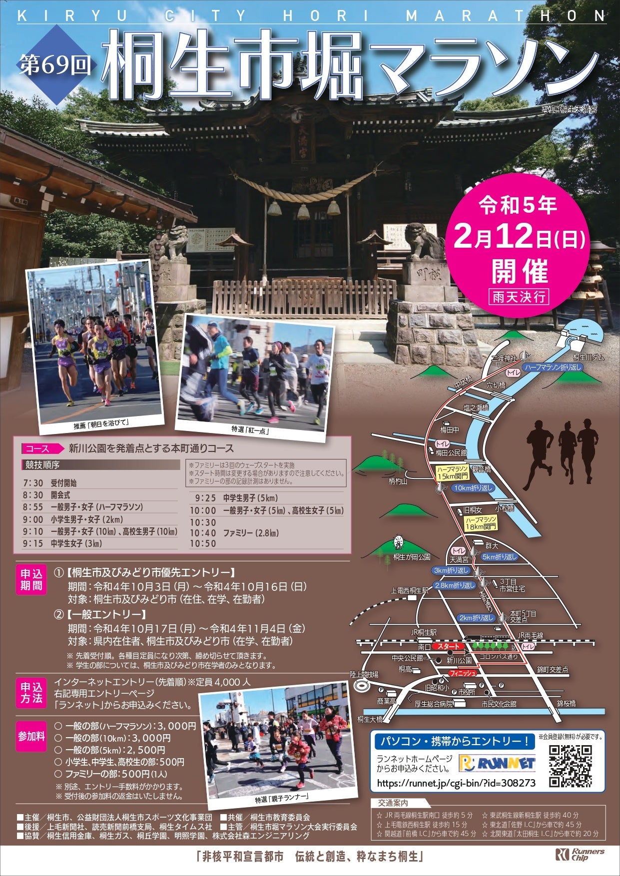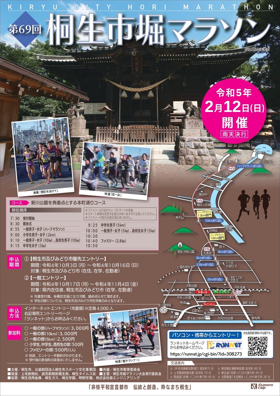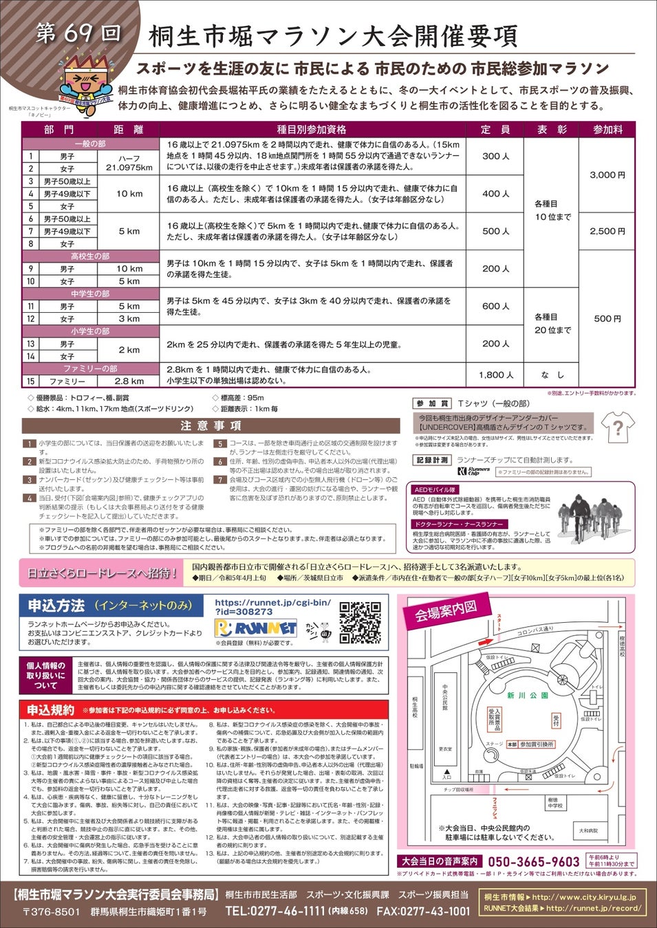 「第69回 桐生市 堀マラソン大会」申し込み参加者全員へ天然温泉ゆらぶ桐生店の入泉招待券を寄贈
