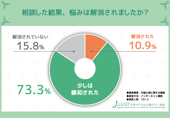 では、相談した結果、悩みを解消できた方はどれほどいるのでしょうか。