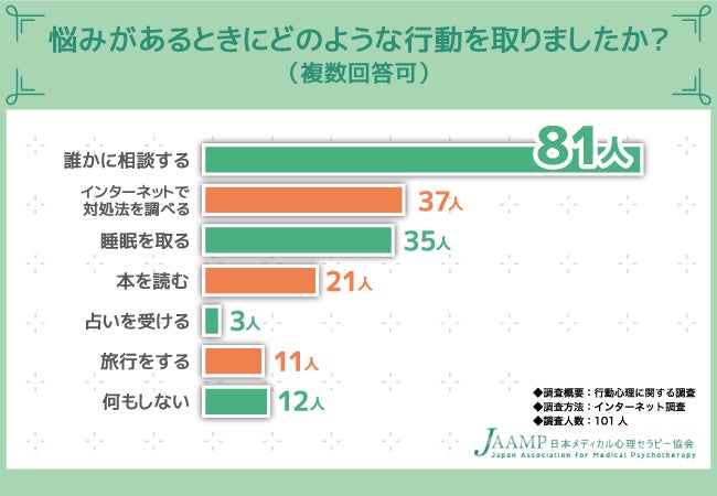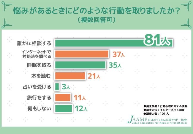 そこで、「悩みがあるときにどのような行動を取りましたか?」と質問したところ、