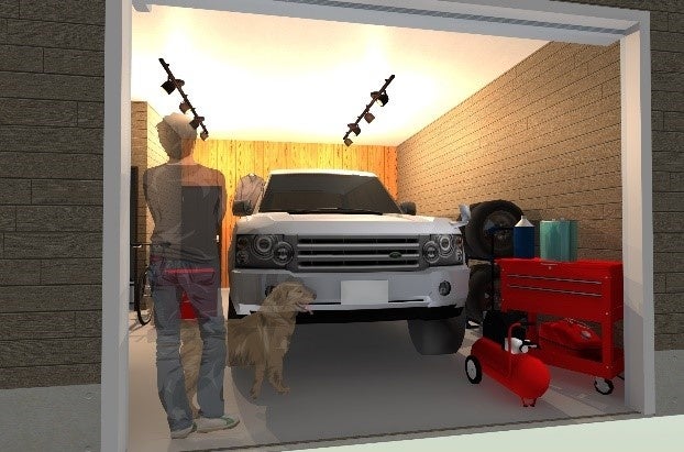 広々としたシャッター付きガレージは車の防犯対策になるのはもちろんのこと、トレーニングルーム、ワークスペースや倉庫など幅広く活用することができます。