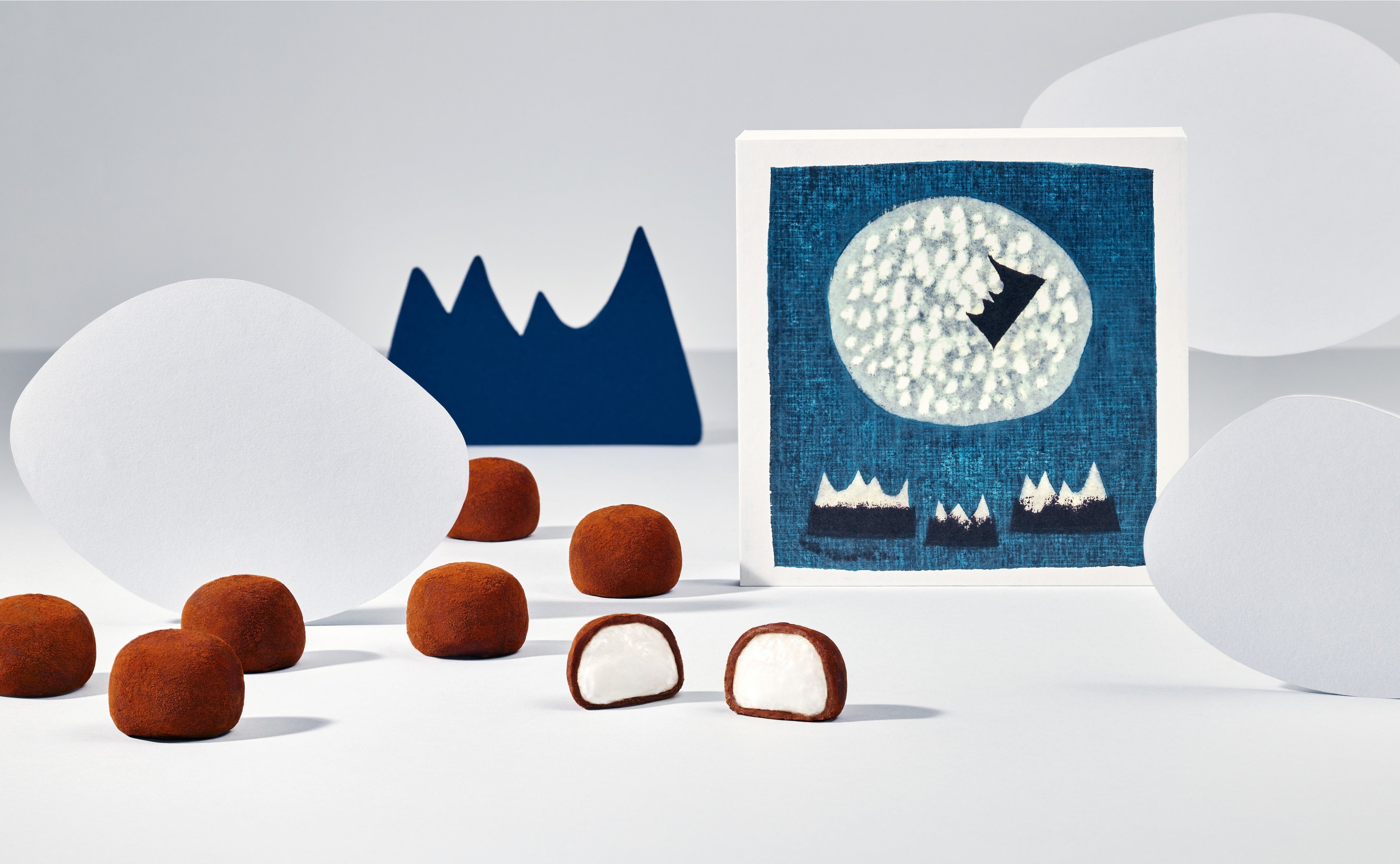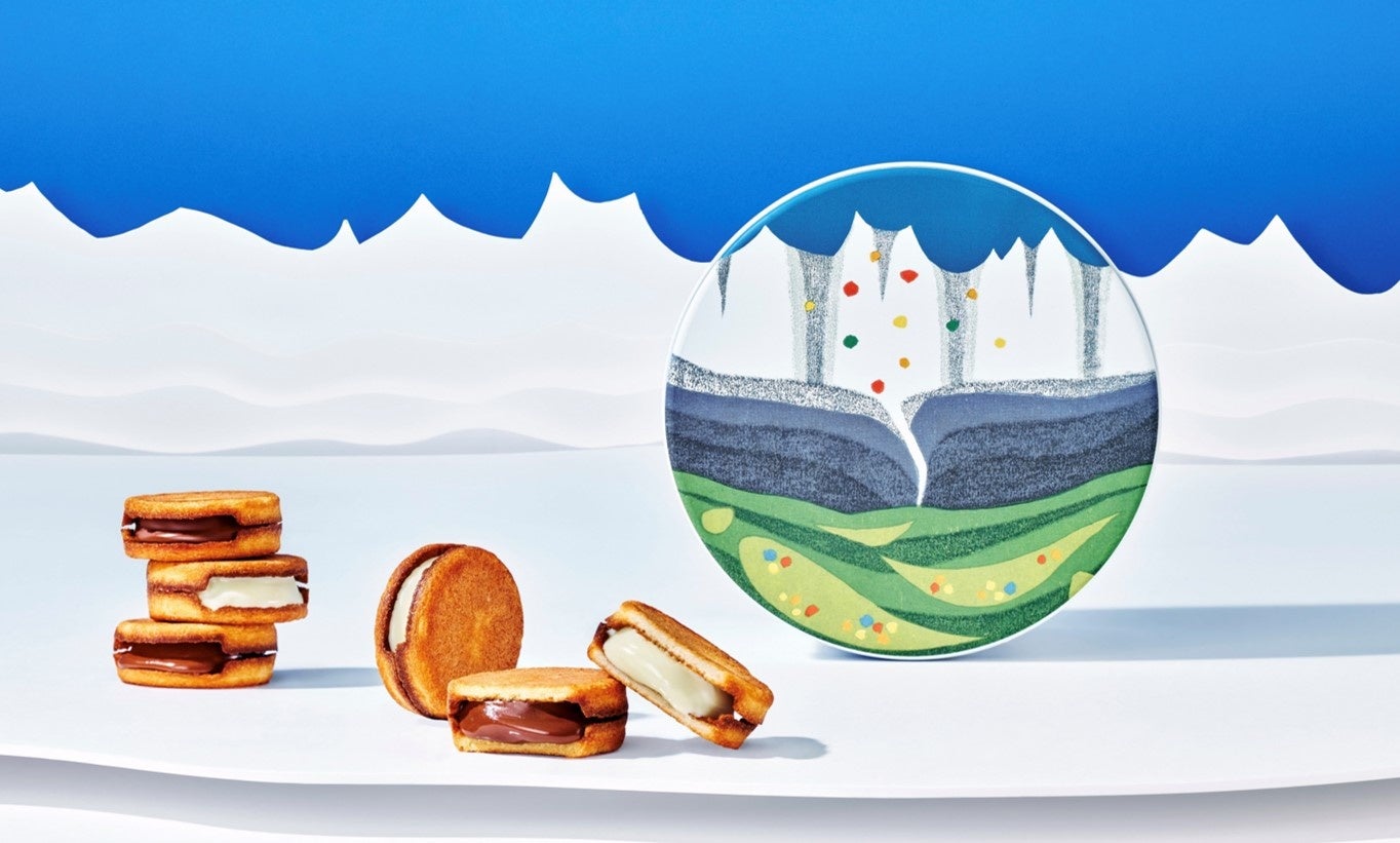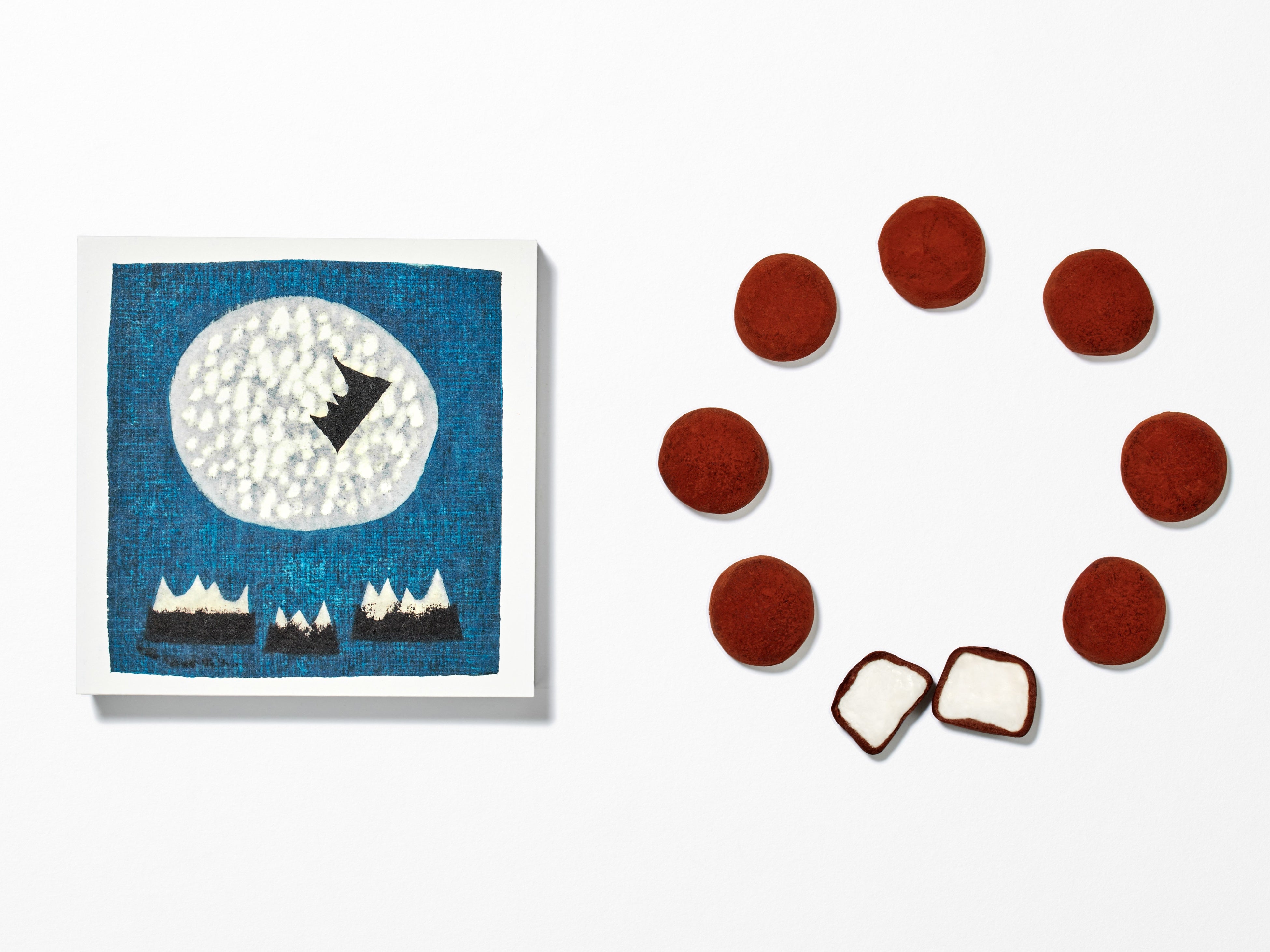 ホワイトチョコレートとミルクチョコレートが一緒に楽しめるスノーサンド白と黒のセットで、食べた後もとっておきたくなるようなかわいいデザインに仕上がっています。