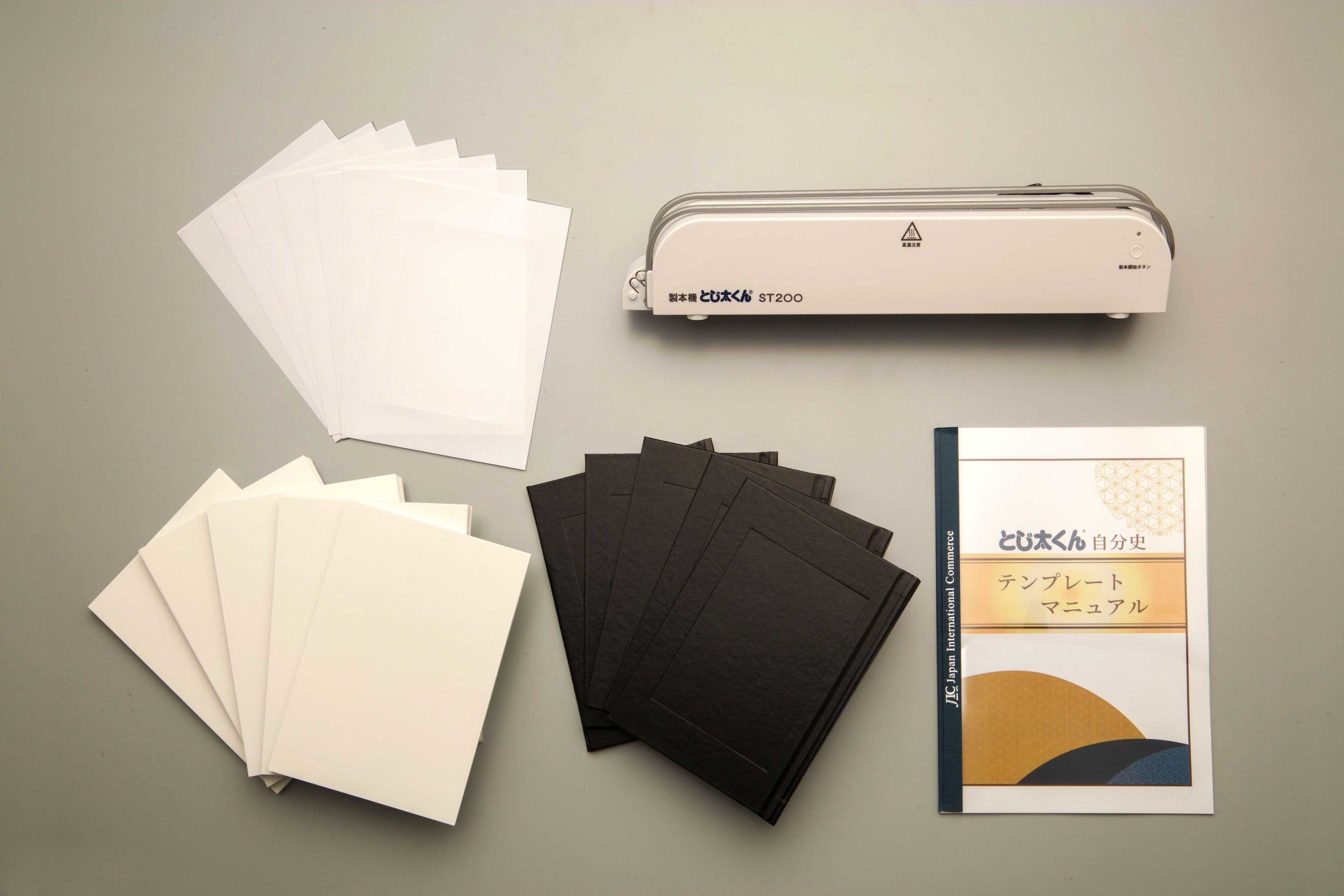 2. 専用ハードカバー・専用製本用紙・専用製本機・表紙ラベルシールのセット