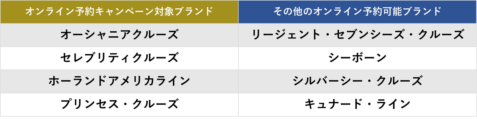 また、15ブランドは船会社の予約システムと連携し、そのうち8ブランドはオンラインでの予約が可能です。ご希望のお部屋選択など、豊富な選択肢の中から自分に最適なクルーズを容易に見つけ、予約することができます。