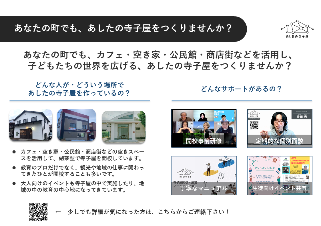①寺子屋長(開校者)向け→ https://ashita-terakoya.com/