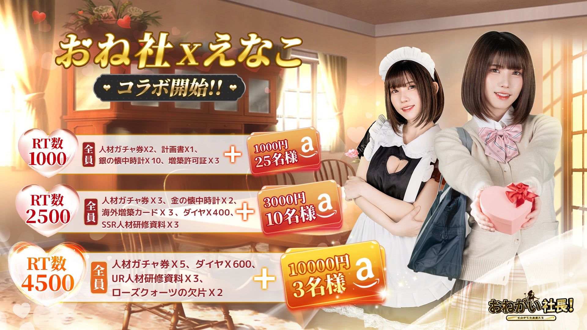 「おねがい社長」のバレンタインデーコラボイベント開催!大人気コスプレイヤー「えなこ」とのスペシャルコラボがスタート!大型イベントやギフト券が当たる、特別キャンペーンも同時開催!