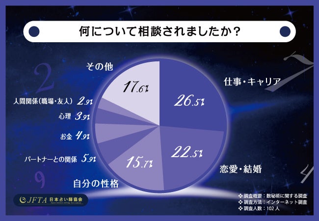 相談内容として多かったのは『仕事・キャリア』や『恋愛・結婚』についての相談で、まだ見ぬ将来への不安を相談した方が多かったです。
