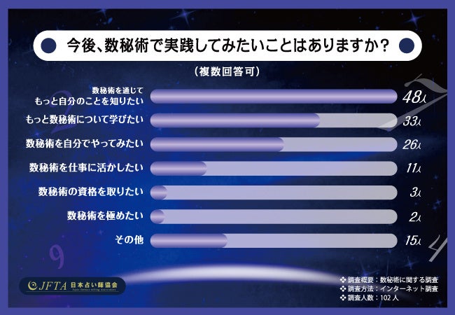 次に、「今後、数秘術で実践してみたいことはありますか?(複数回答可)」と質問したところ、