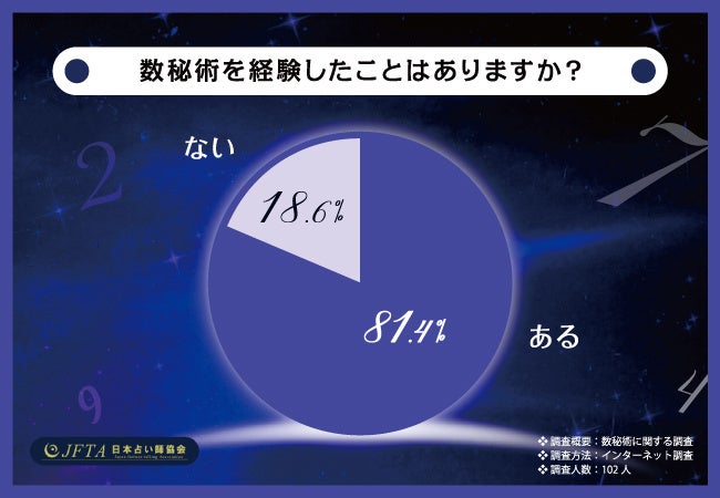 そこで数秘術鑑定士®資格認定試験(https://www.uranai.org/suhijyutsu/)を主催する日本占い師協会(https://www.uranai.org/)は、全国の男女102名を対象に『四柱推命』に関するアンケートを実施しました。