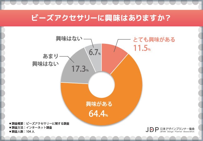 そこで今回、ビーズアクセサリーデザイナー認定試験(https://www.designshikaku.net/handmade/beads/)を主催する日本デザインプランナー協会(https://www.designshikaku.net/)は、全国の男女104名を対象に「ビーズアクセサリー」に関するアンケートを実施しました。