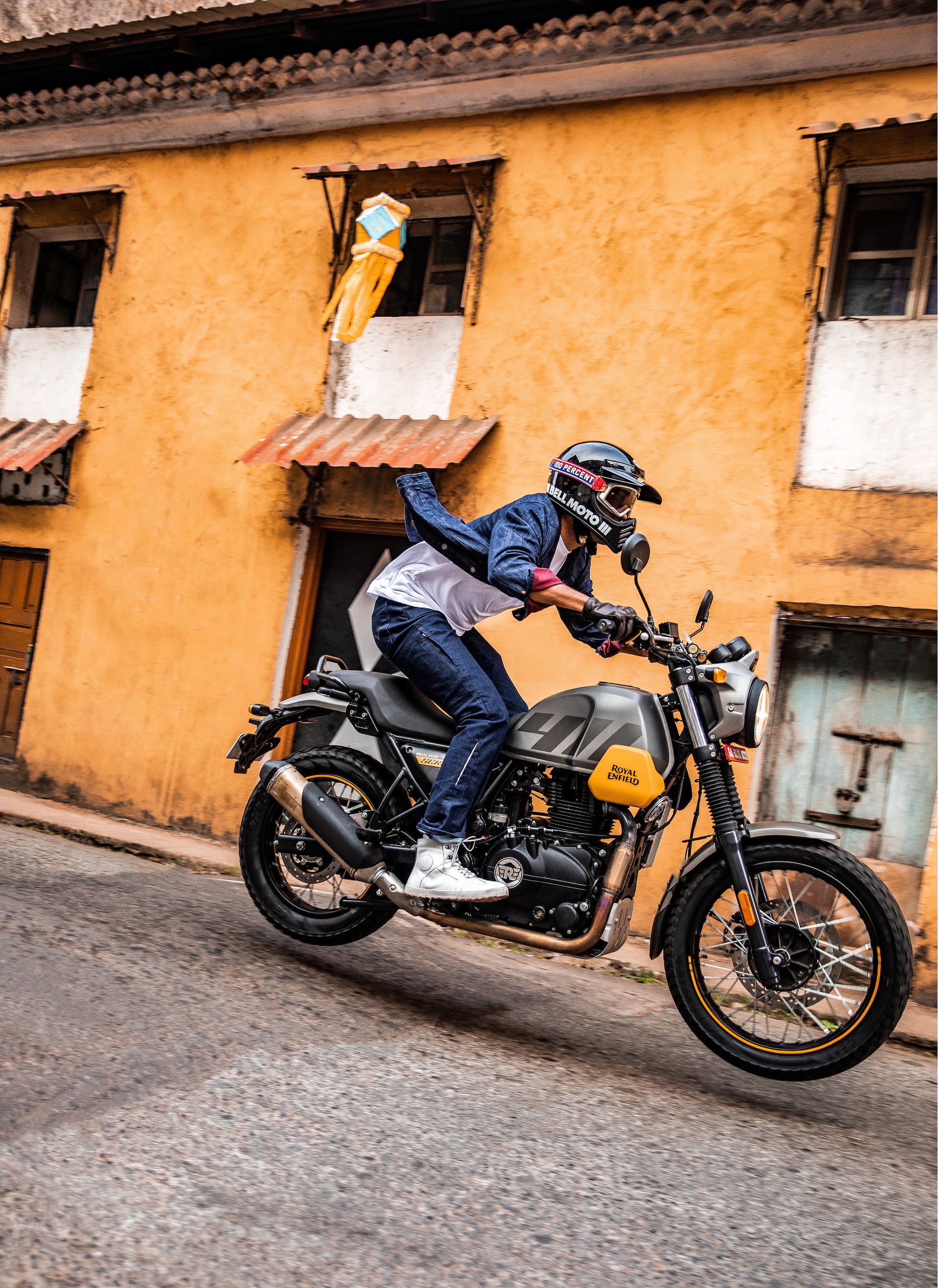 Scram 411は、ロイヤルエンフィールドが常に追求している、探検を可能にし、あらゆる冒険の完璧な味方となるモーターサイクルを作るという姿勢を受け継いでいます。そのようなモーターサイクルの一つが、ロイヤルエンフィールド初のアドベンチャーツアラー、Himalayanです。Scram 411は、真のスクランブラーのバイブスを持ち、強いアドベンチャーDNAを内蔵した新しい種のモーターサイクルです。都市部の道路では遊び心にあふれた機敏さを感じさせながらも、どんな状況にも対応できる高い能力を備えています。