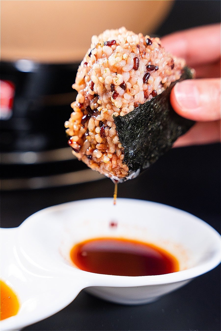 上記の特徴を挙げた中で「育てるタレ」は、 お肉や野菜の旨味が凝縮されている為、五穀米おにぎりをディップすることで 余すことなく〆までご堪能頂けます。 おにぎりは3つのサイズからお腹の具合に合わせての注文が可能です。