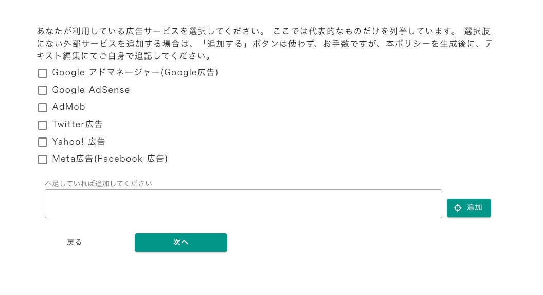 そこで、これまで100種類以上の法律文書生成に対応してきた法律文書ジェネレーターKIYACでは、この度、新たに、いくつかの簡単な質問に答えるだけ、わずか数分で、外部送信ポリシーを生成できるジェネレーターを追加しました。