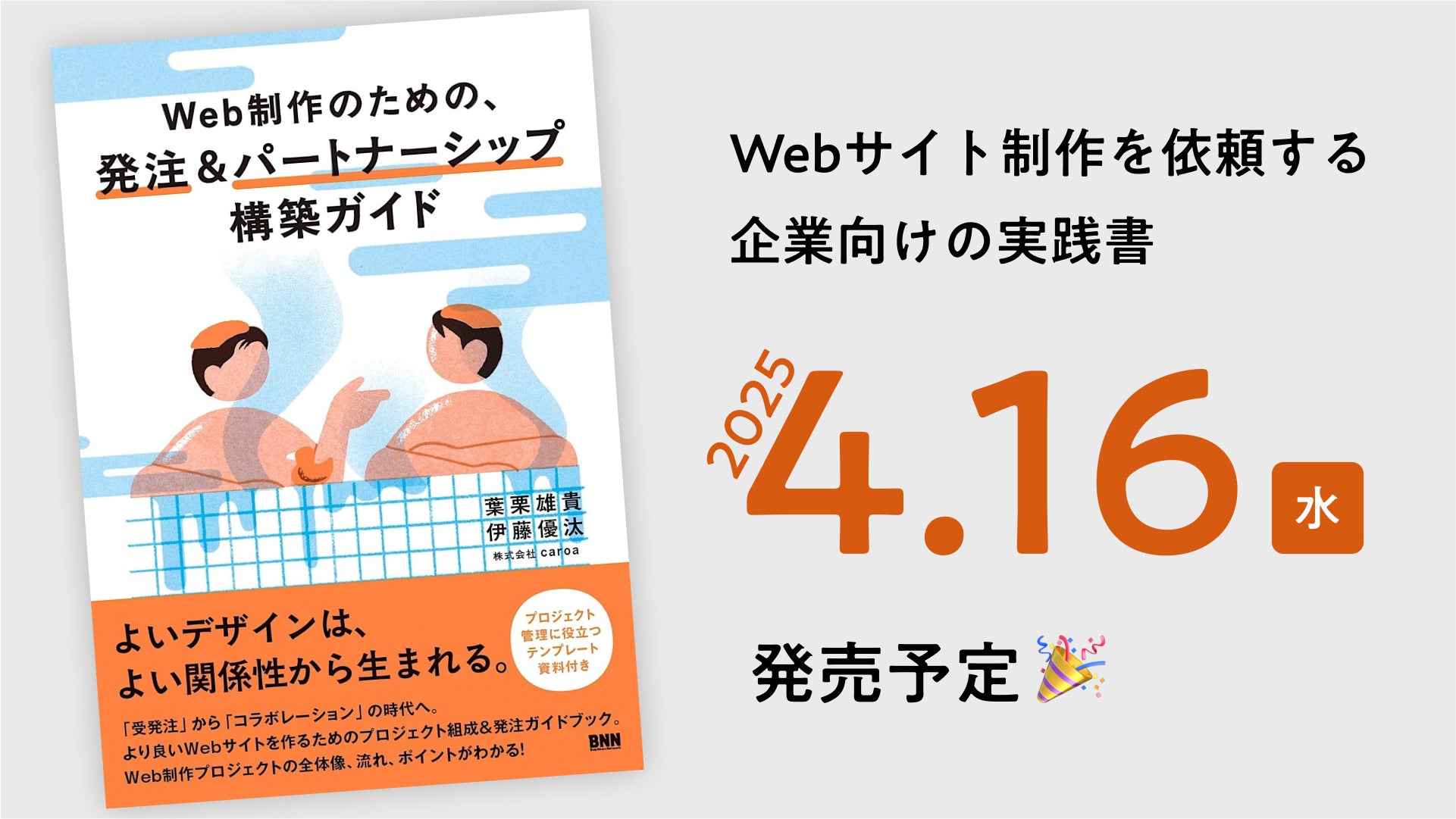 株式会社caroa (本社:東京都港区、代表取締役:葉栗 雄貴、以下「カロア」)は、2025年4月16日(水)に『Web 制作のための、発注&パートナーシップ構築ガイド』(出版社:ビー・エヌ・エヌ、以下「本書」)を発売することをお知らせいたします。