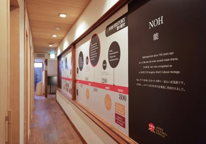 内容:国登録有形文化財の山本能楽堂を一定期間開放し、外国人観光客が短時間で気軽に文化施設を訪問・見学できる環境を提供。外国人がセルフで楽しめるよう能楽堂内の展示説明の多言語化を行い、3D能面、3D能楽堂のデジタルコンテンツも提供し、帰宅後でも楽しめるようにした。普段は見られないバックステージの見学や、能面、装束、楽器の体験も実施。開放する時間帯を朝、昼、夕方からと時間を変えて実施し、訪問時間の利便性にも配慮した。