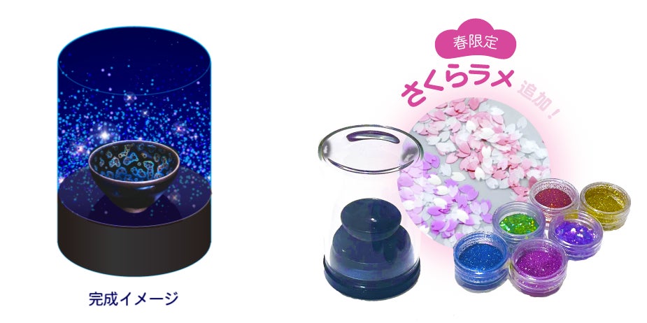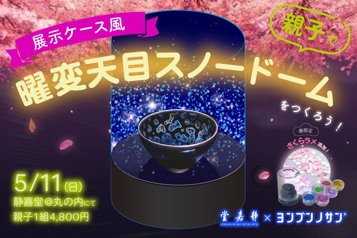 このイベントでは、国宝『曜変天目』実物を親子で鑑賞できるほか、茶碗鑑賞の基礎を知ることができ、さらに自分だけの「展示ケース型オリジナル曜変天目スノードーム(本ワークショップ限定)」を制作し持ち帰ることができます。2回目となる今回は春限定のさくらスパンコールを封入することができます。
