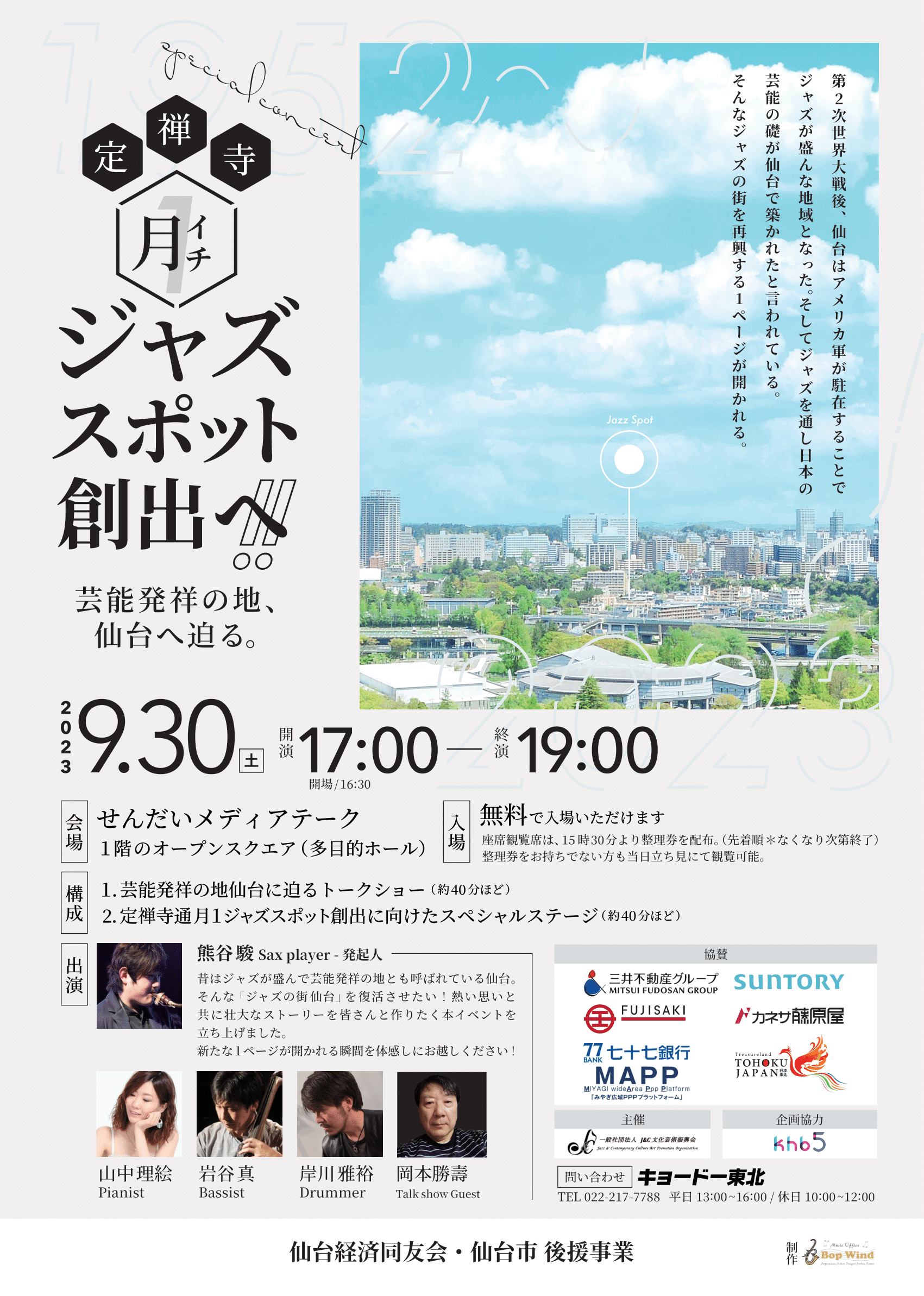 当日は、芸能発祥の地仙台に迫るトークショーや月1ジャズスポットを想定したスペシャルライブも開催。