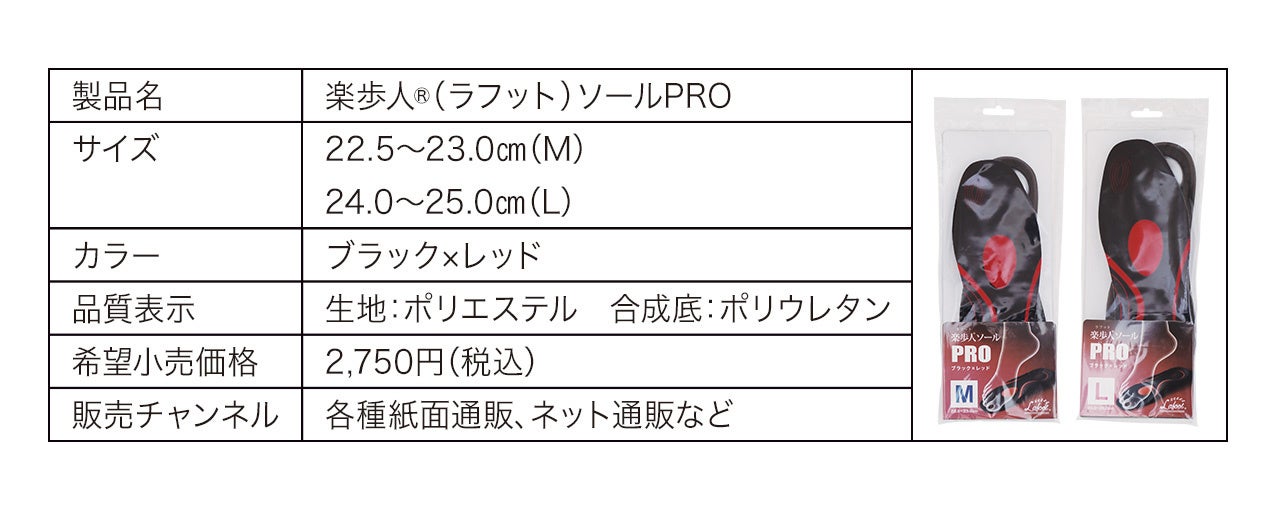 累計26万足を販売した「楽歩人®(ラフット)ソール」シリーズから新商品「楽歩人®(ラフット)ソールPRO」を発売