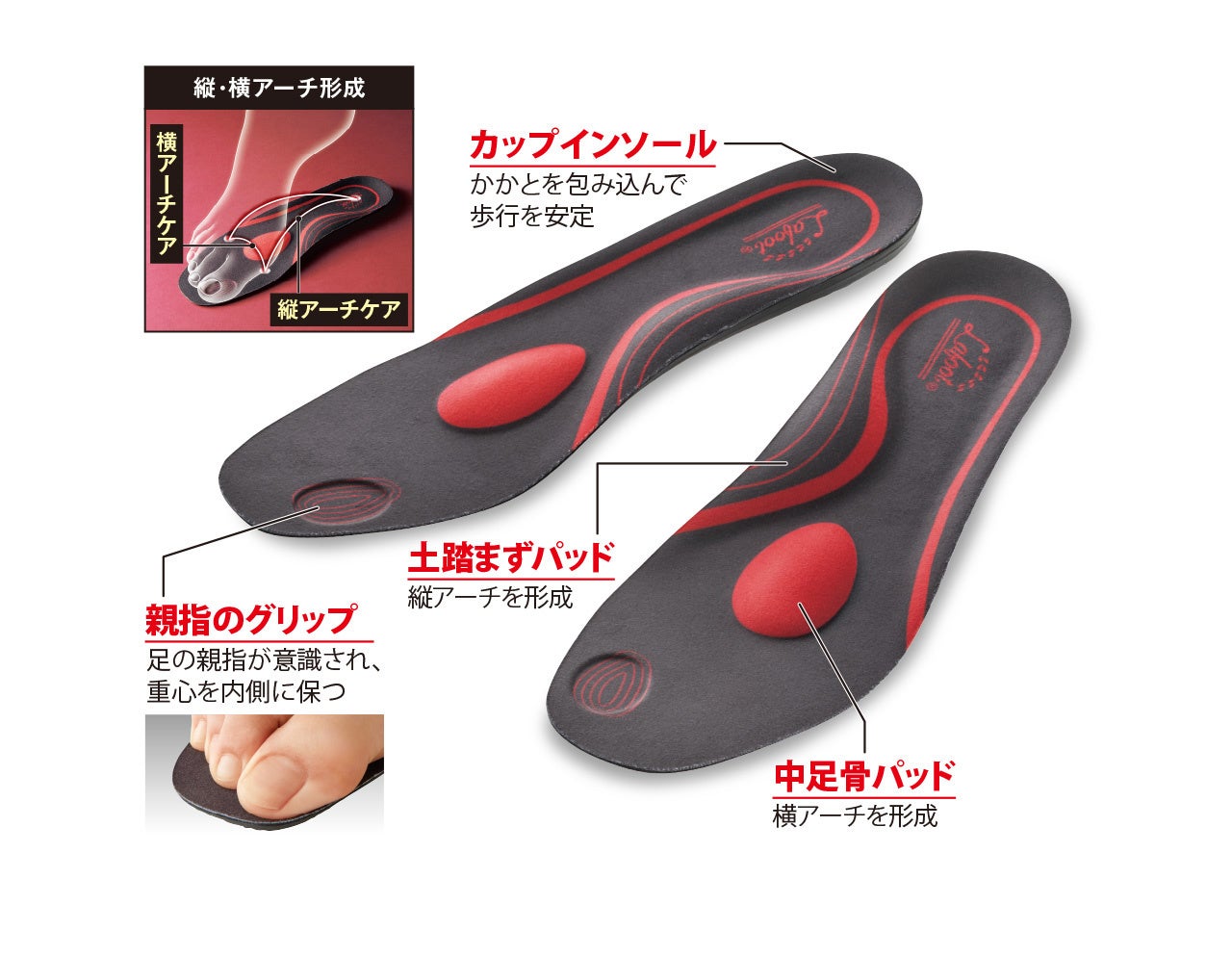 縦・横アーチを同時にサポートすることで、立ち仕事や長時間歩行による足の疲れを軽減します。