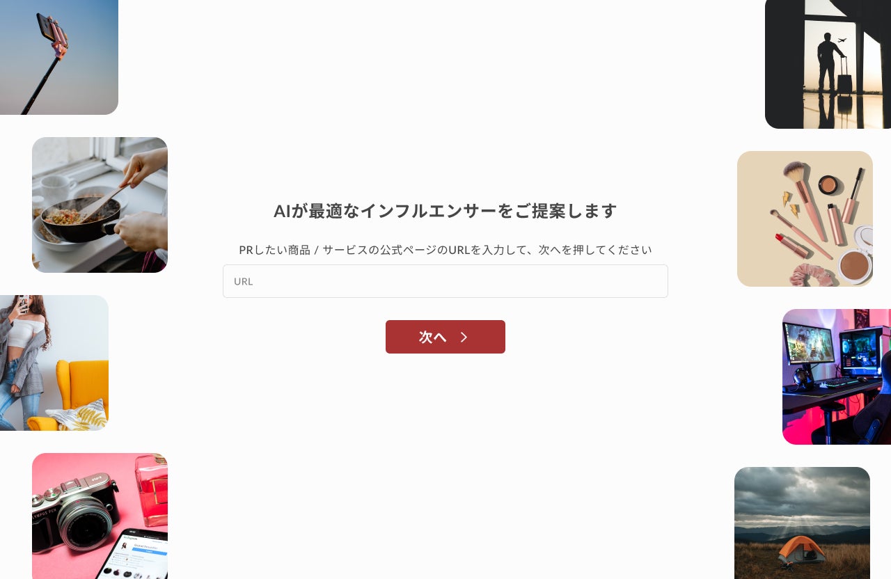 ChatGPT搭載の「AI選定」で、最適なインフルエンサーを発見!商品 / サービスのURLと設問回答で、AIがピッタリのインフルエンサーを選び出します。